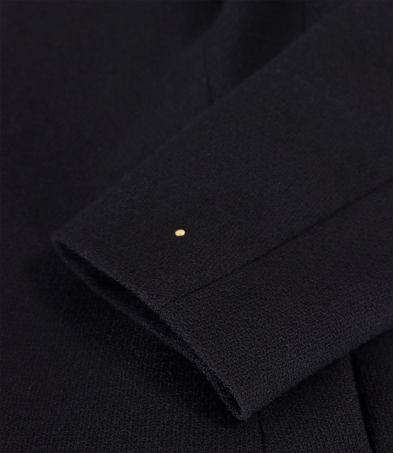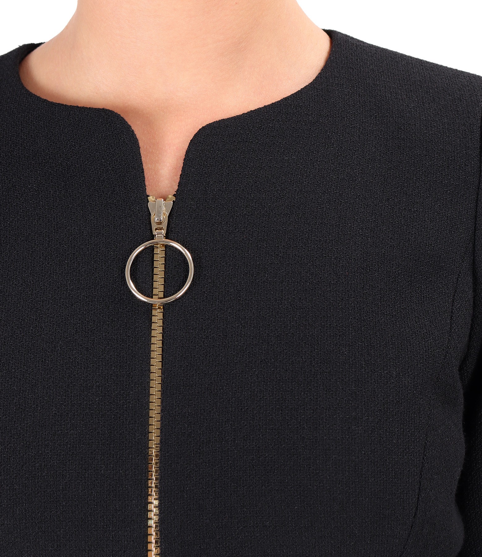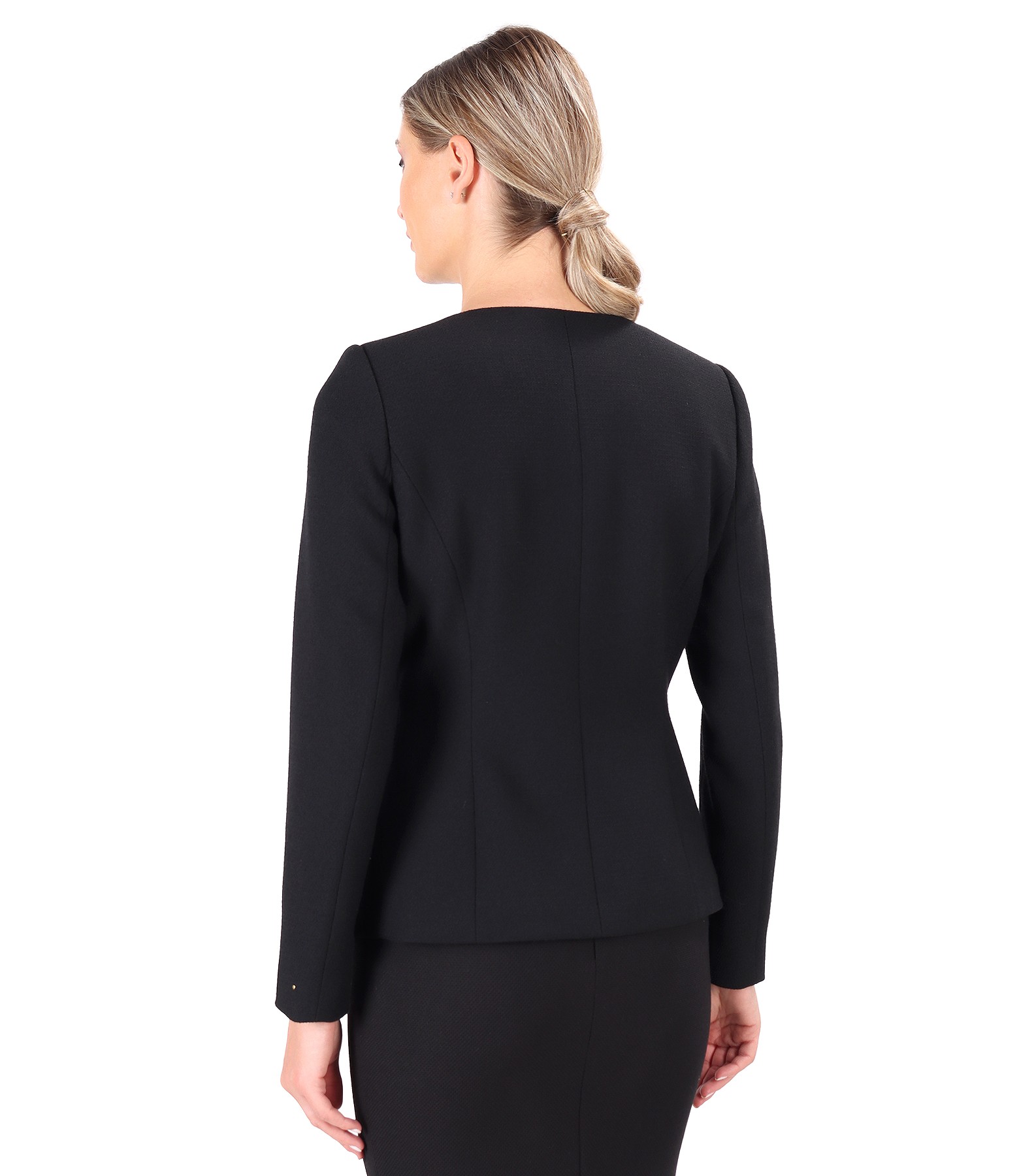 Elegant jacket made of elastic fabric, padded, with side pockets. Closes with metalic zipper on the middle back.