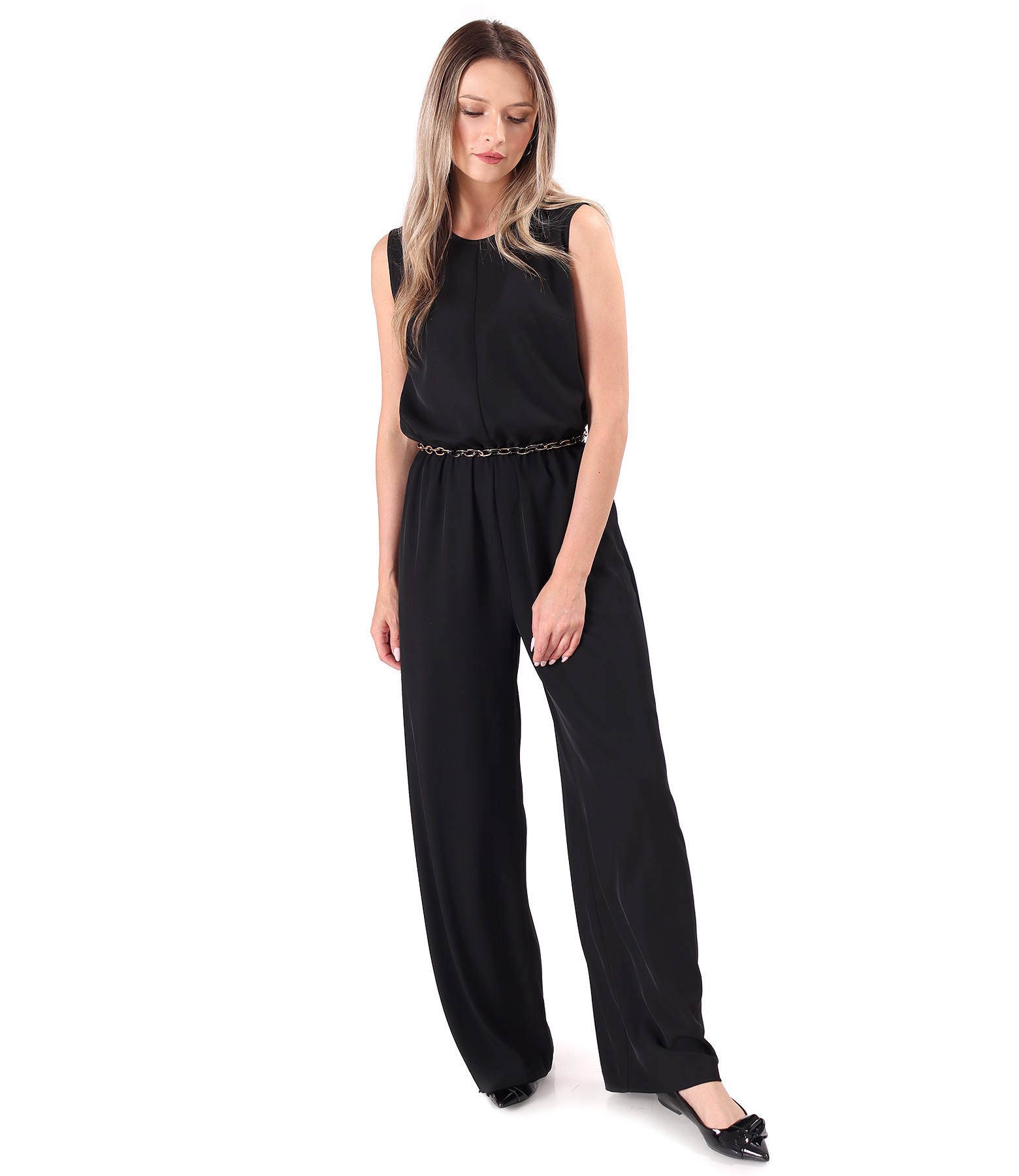 Elegant jumpsuit with decorative chain at the waist (Black), size