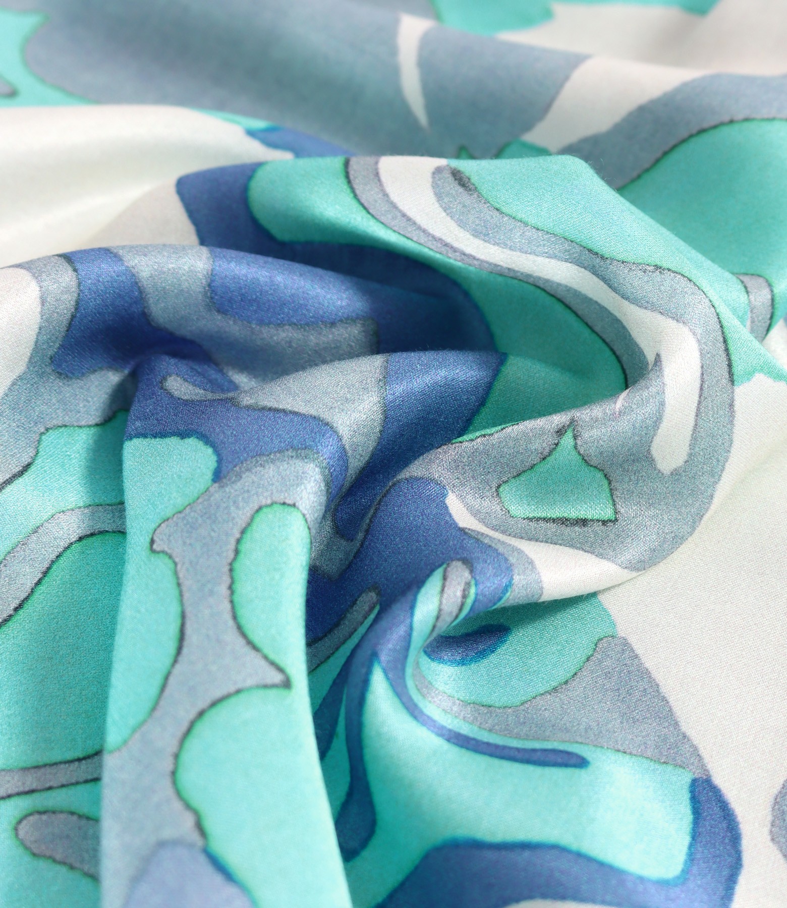 Elegant long dress made of viscose with digital printed natural silk, lined with viscose, with a slit on the left side and a round neckline. It closes with a button in the middle of the back. The position of the print varies per product.