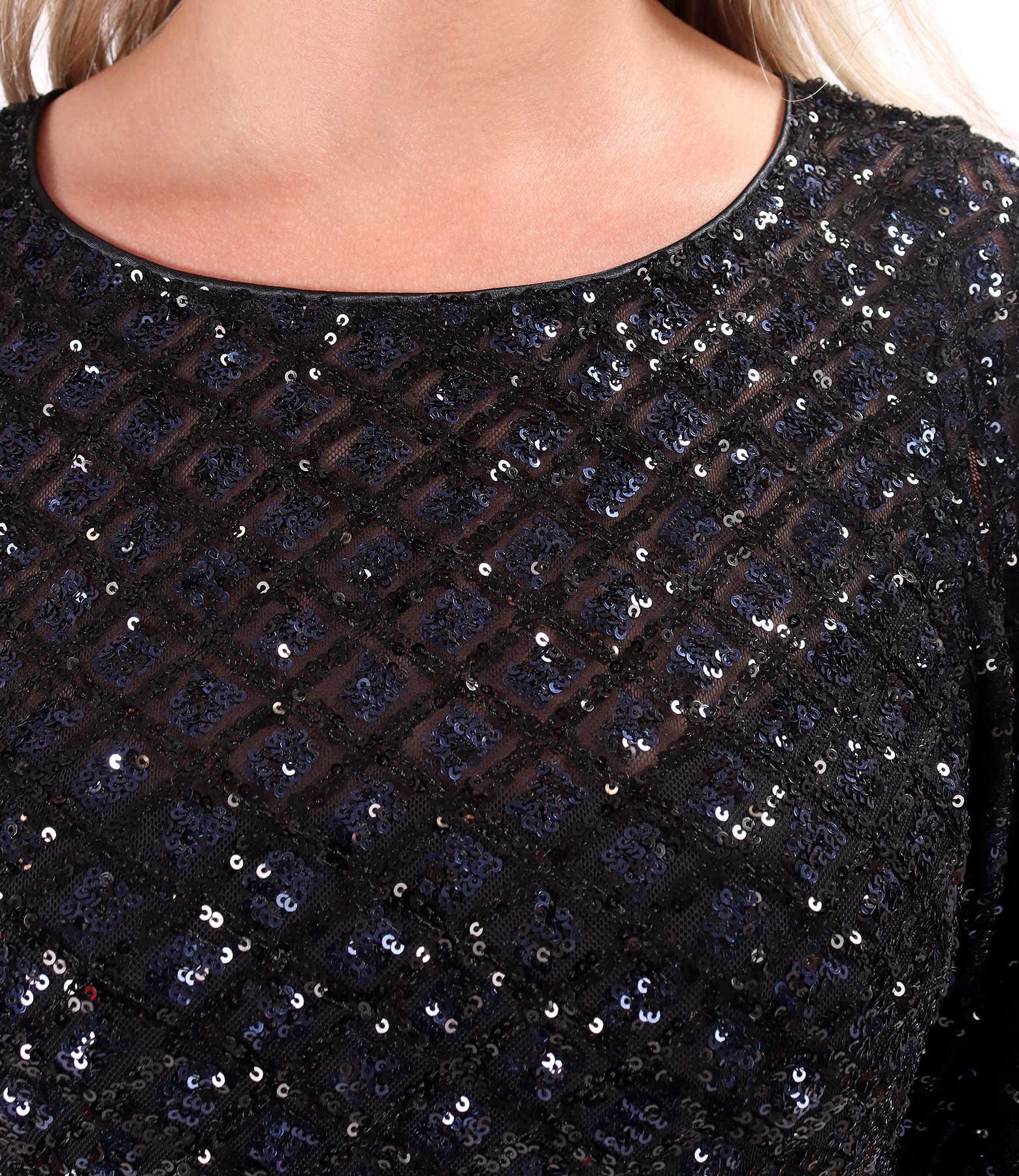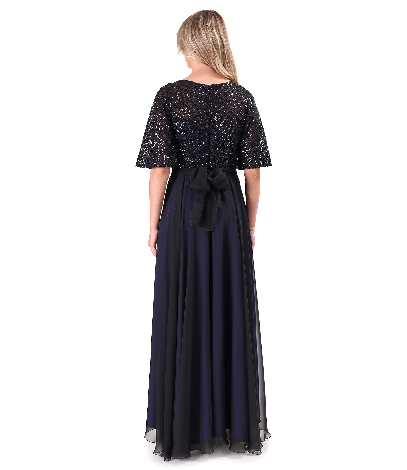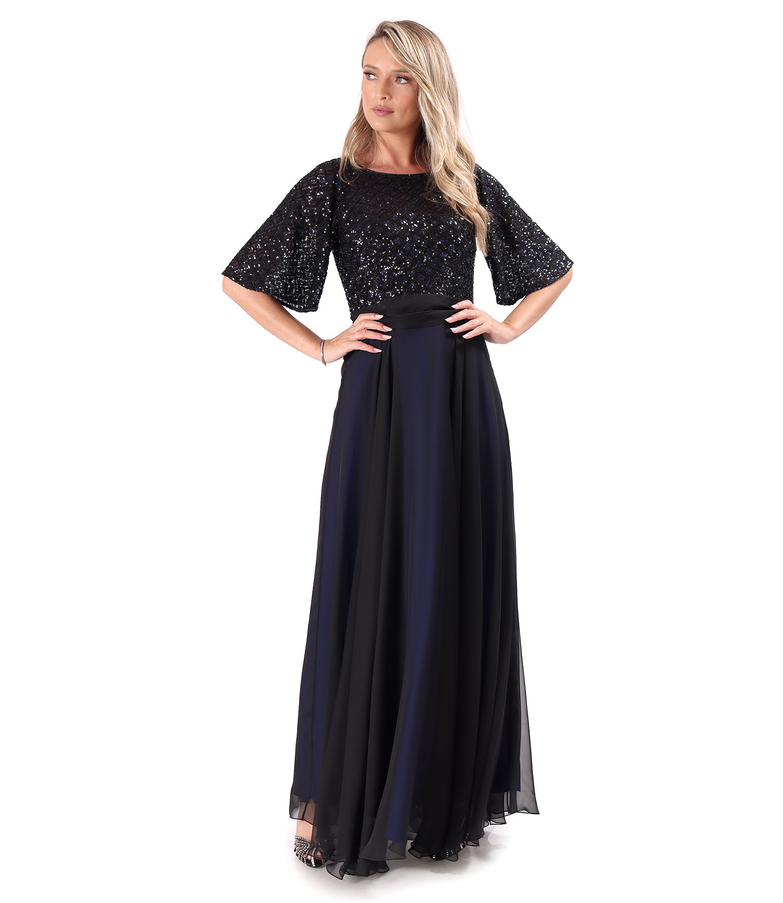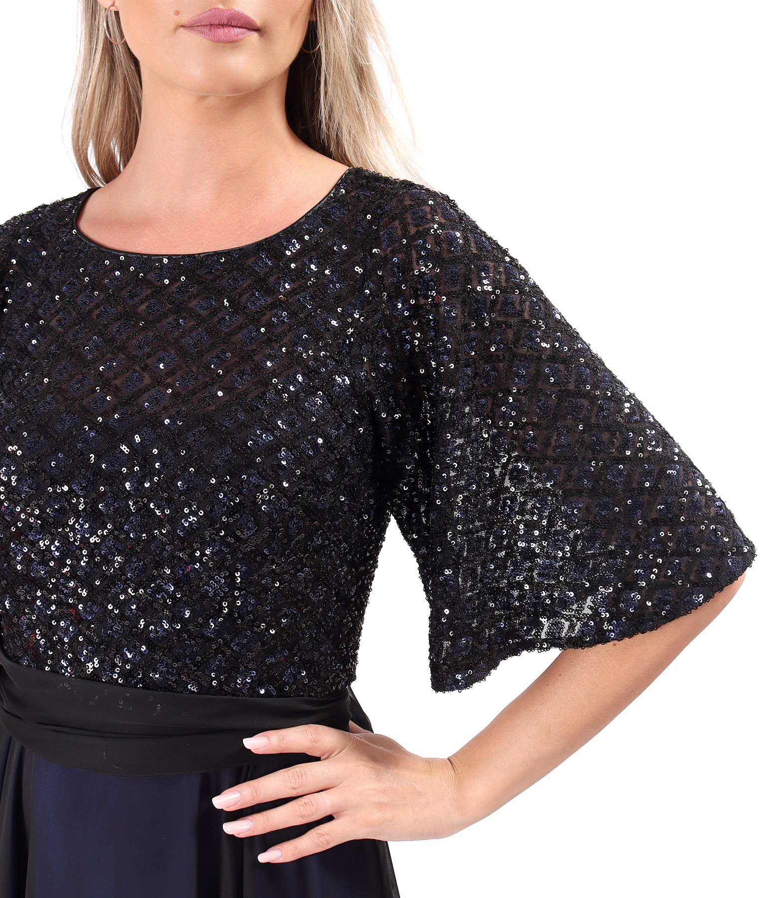 Elegant long veil dress with sequined bodice and sleeves (Dark blue), size