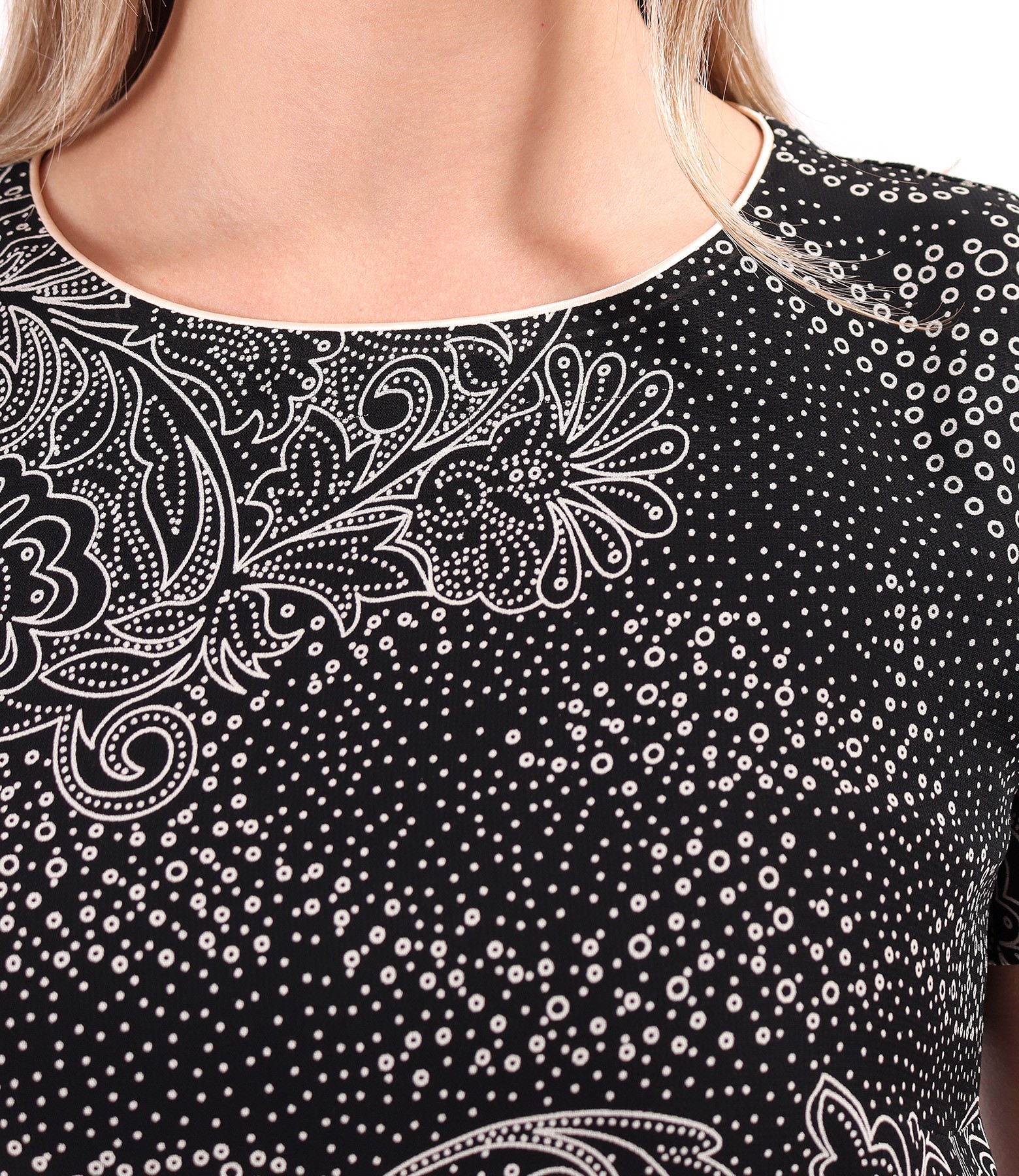 Elegant midi dress made of viscose printed with floral motifs (Black), size