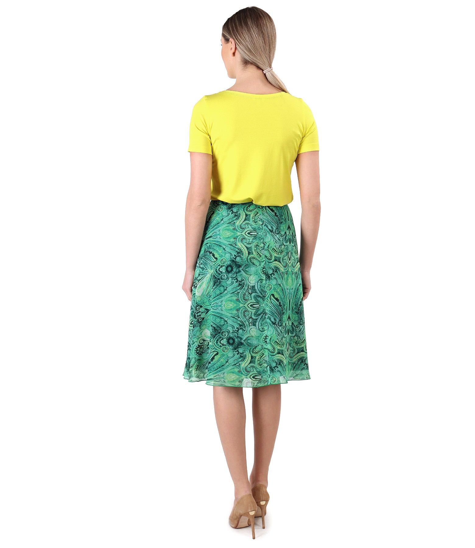 Flared skirt made of veil printed with floral motifs, doubled with viscose.