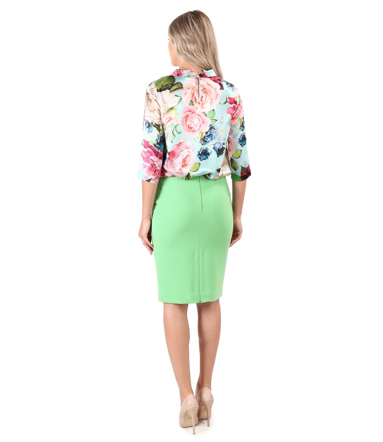 Elegant outfit with natural silk blouse and tapered skirt (), size