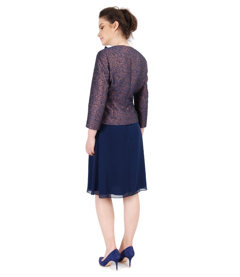 Elegant outfit with veil skirt and brocade jacket with copper thread