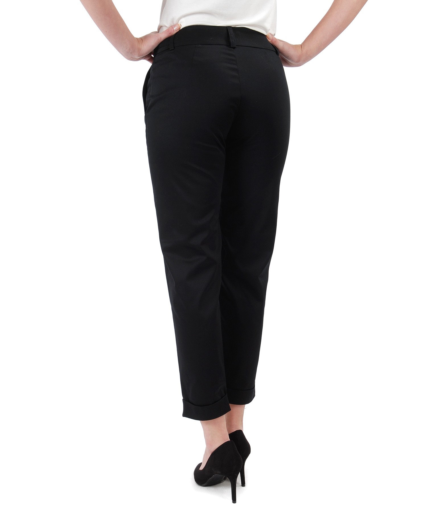 Elegant pants made of elastic cotton, with front pockets and cuff. Closes with normal zipper and 2 front staples.