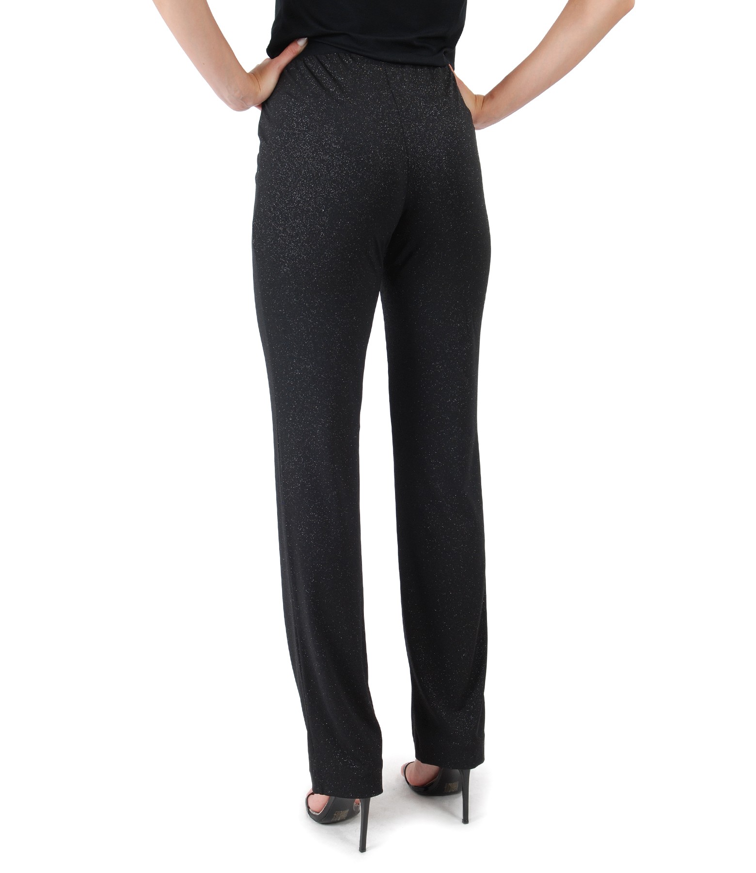 Elegant pants made of elastic jersey with glossy effect (Black), size