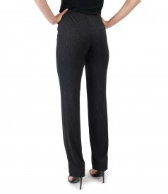 Elegant pants made of elastic jersey with glossy effect, inlay, with elastic waist. Have no closing system.