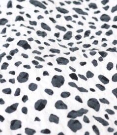Elegant printed brocade elastic jacket, unlined, without collar, with 3/4 sleeves and with decorative pine at the neckline. It closes with an old-fashioned staple on the face.