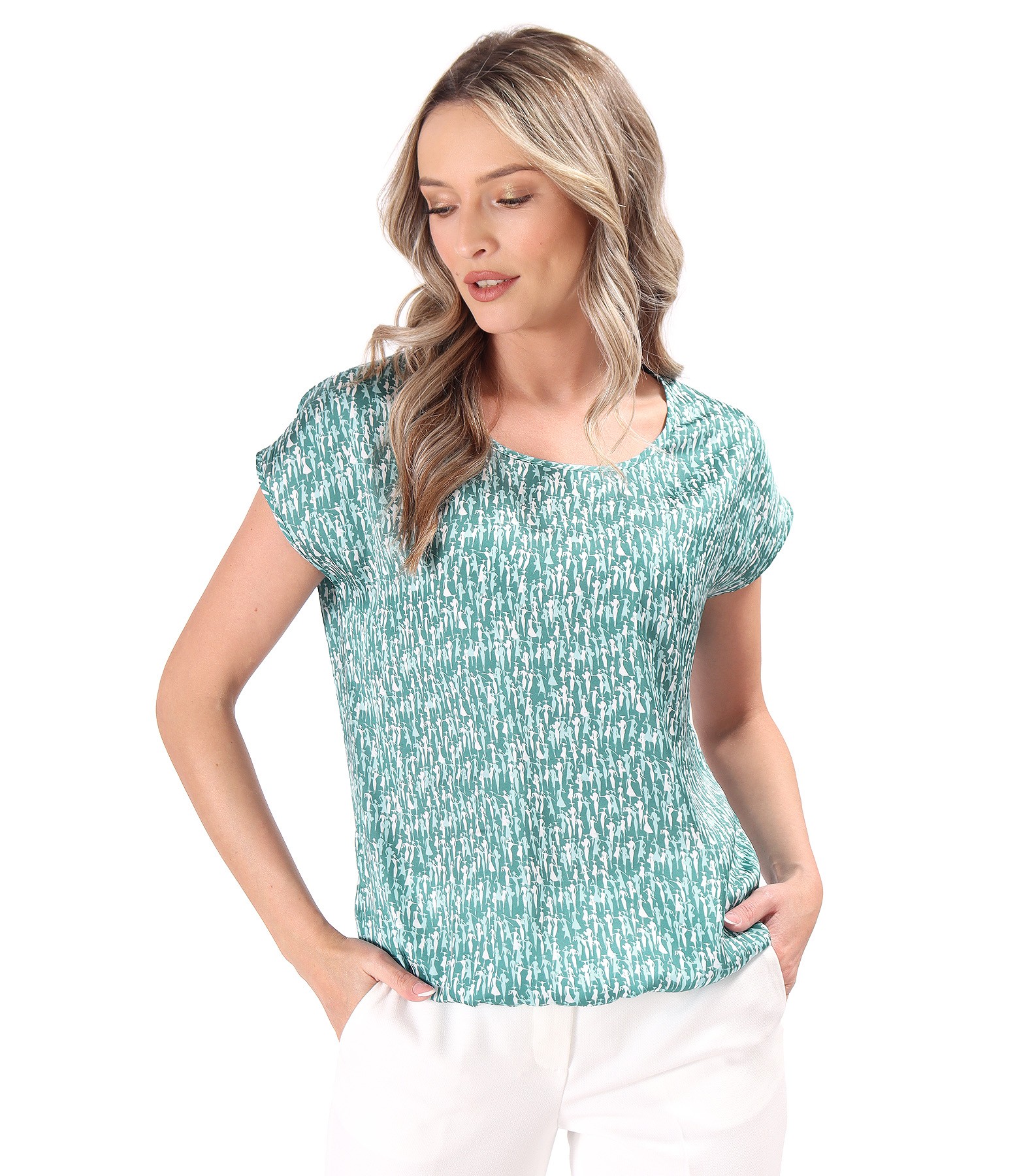 Elegant printed satin blouse with dropped shoulders, elastic waist and round neckline.