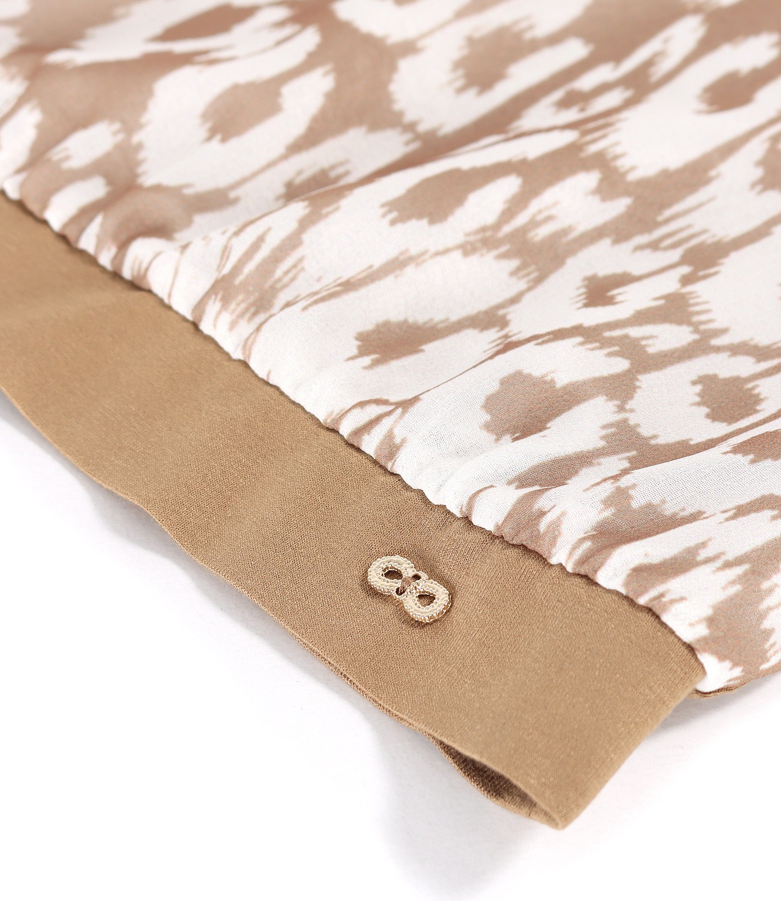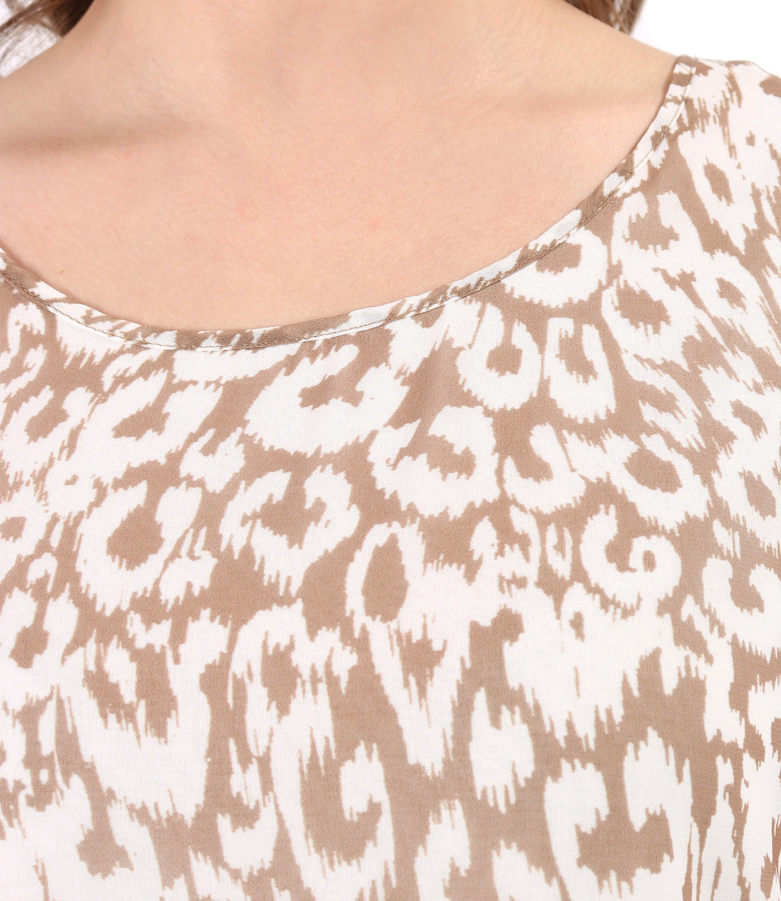 Elastic jersey blouse, with front made of printed veil, doubled with viscose, round neckline, and dropped sleeves.