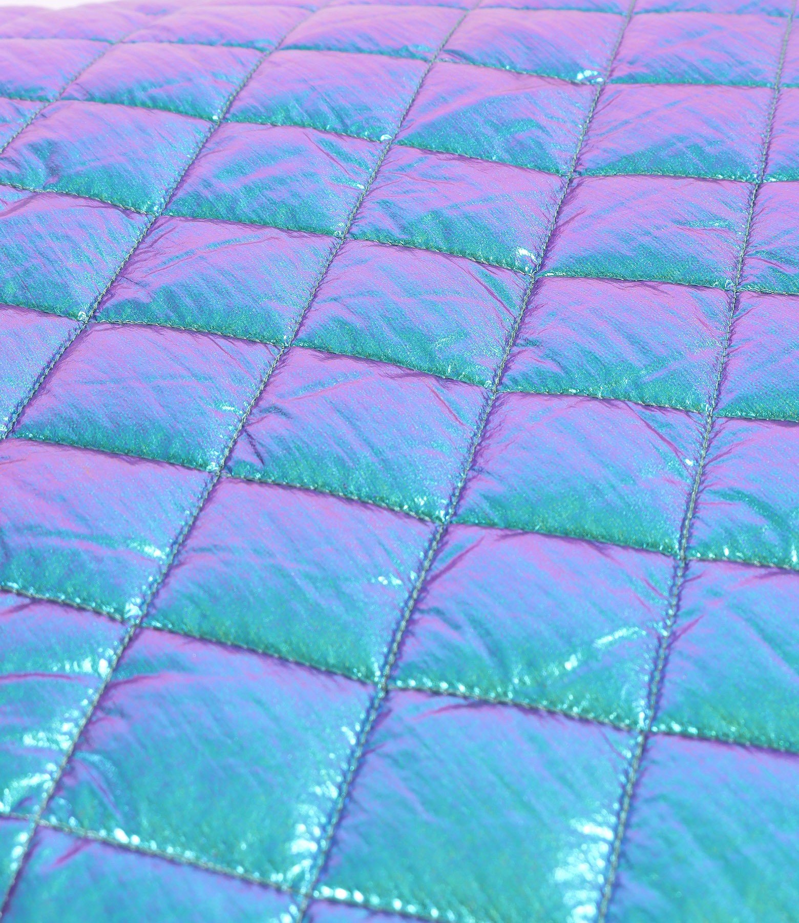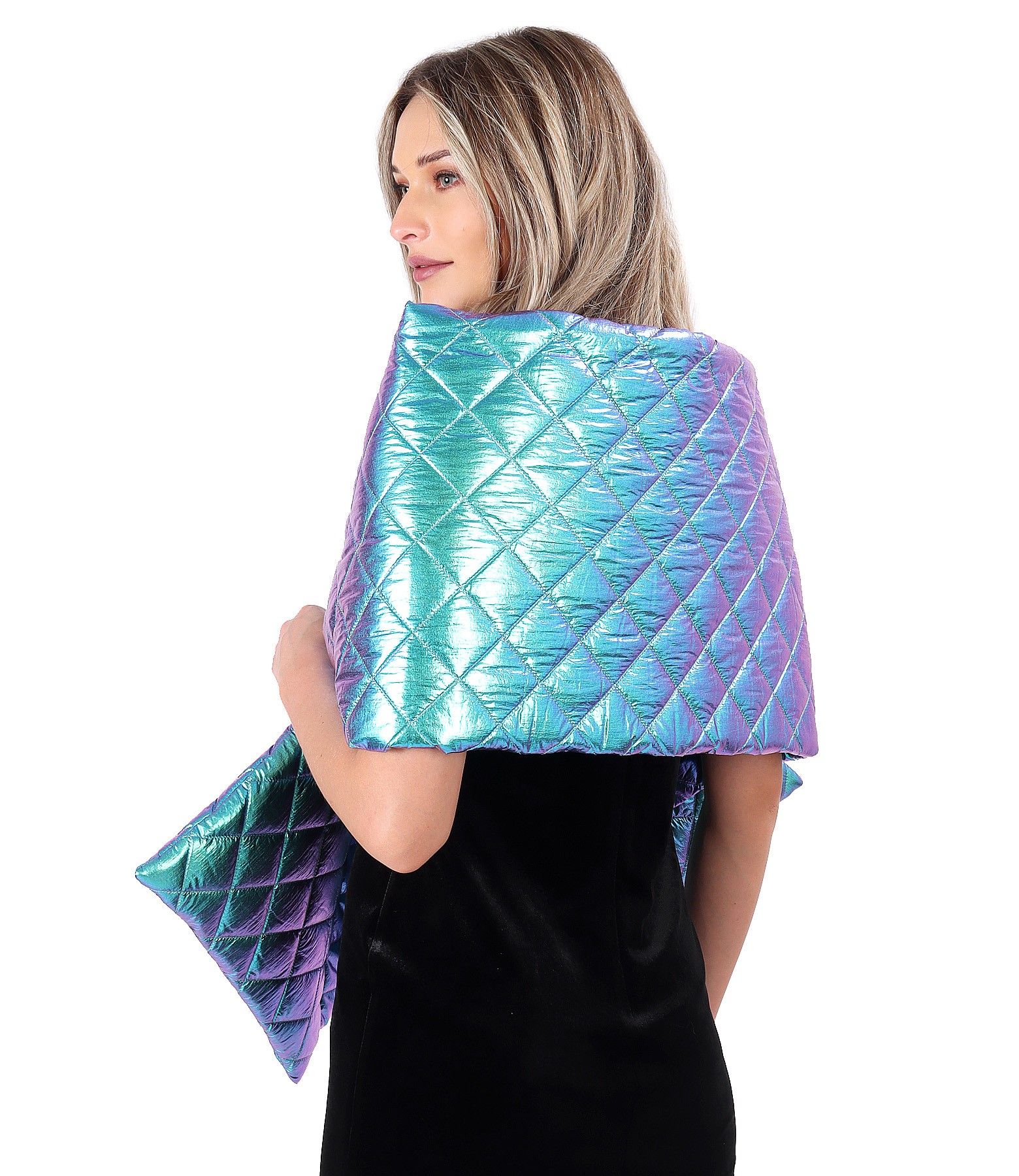 Elegant shawl made of waterproof quilted fabric with changeant effect.