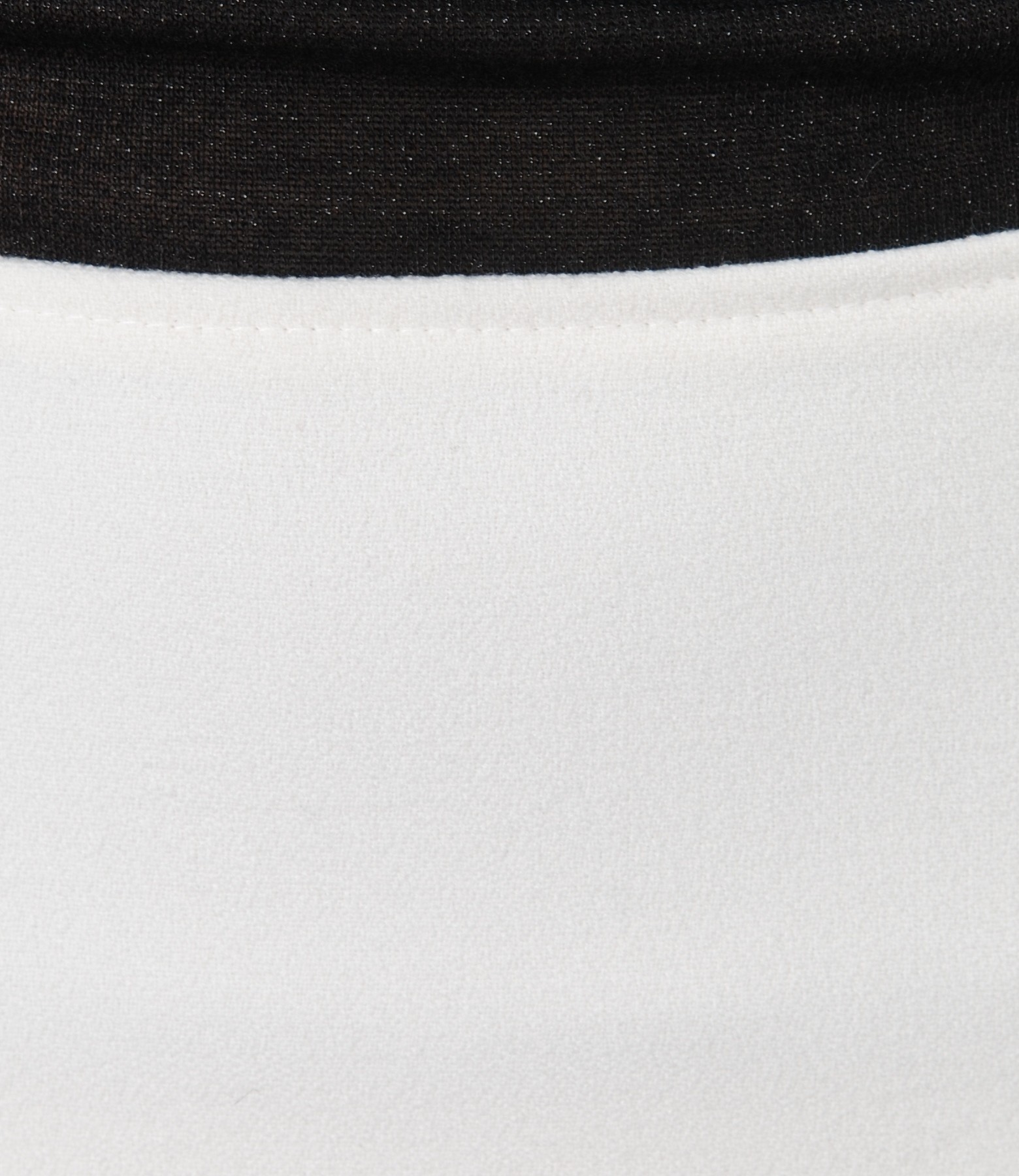 Right skirt in elastic fabric, without belt, with overlapped slit and decorative stitch in waist. Back concealed zip fastening.