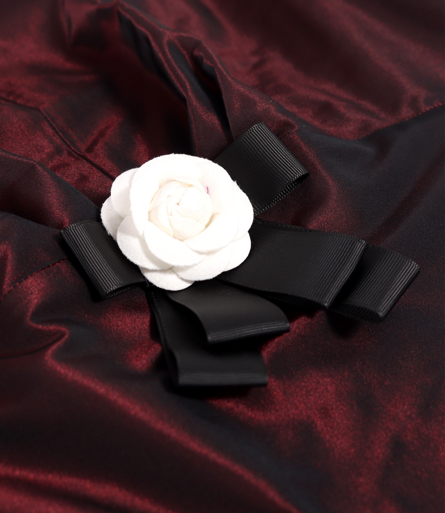 Elegant taffeta dress with detachable brooch at the waist (Garnet Red), size