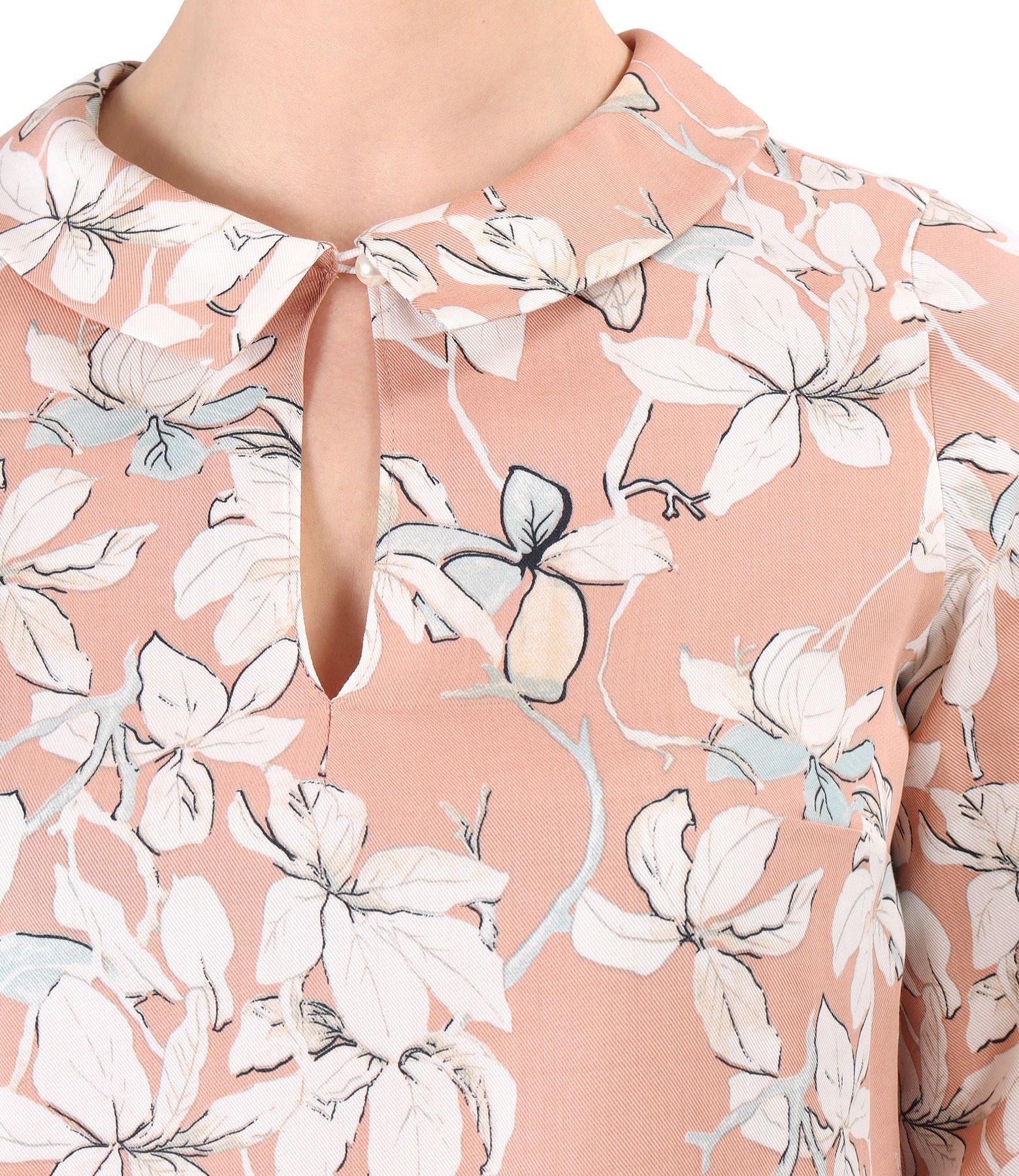 Elegant tencel blouse printed with floral motifs (Pink), size
