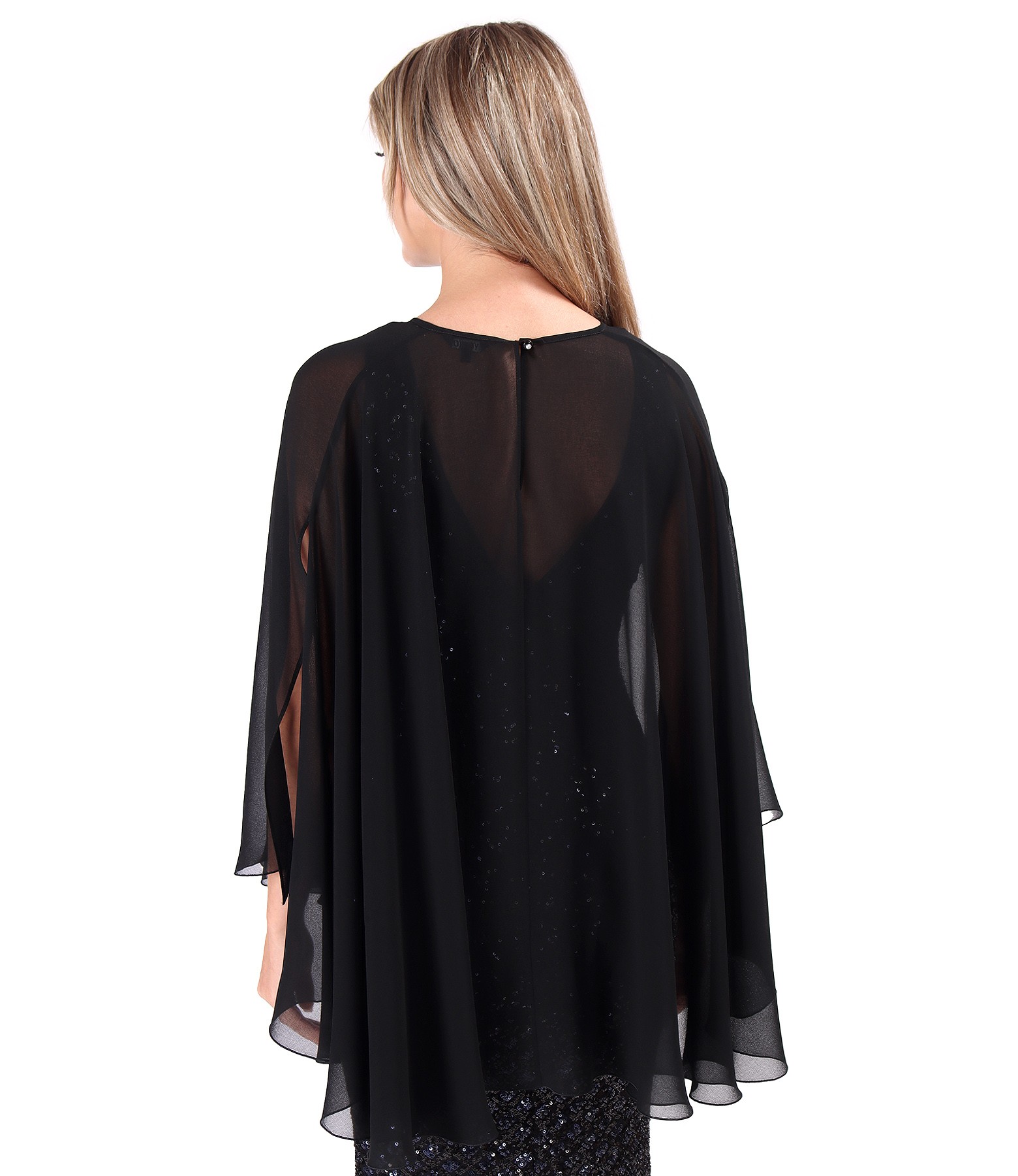Elegant veil cape with round neckline. Closes with a button at the back.
