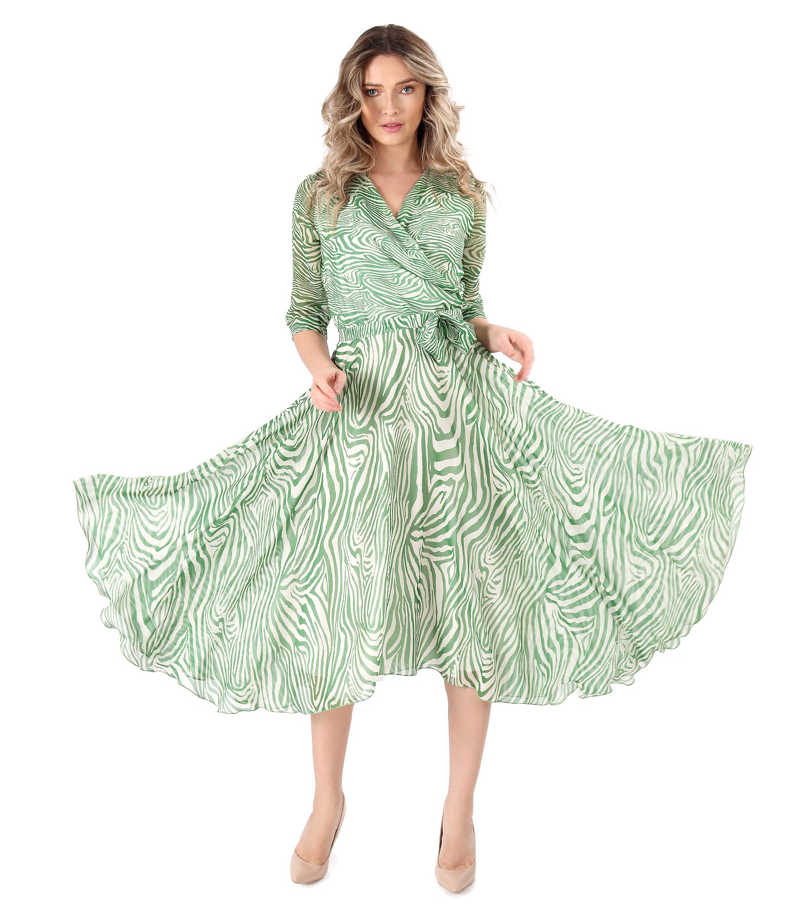 Elegant veil dress with bow at the waist (Green), size
