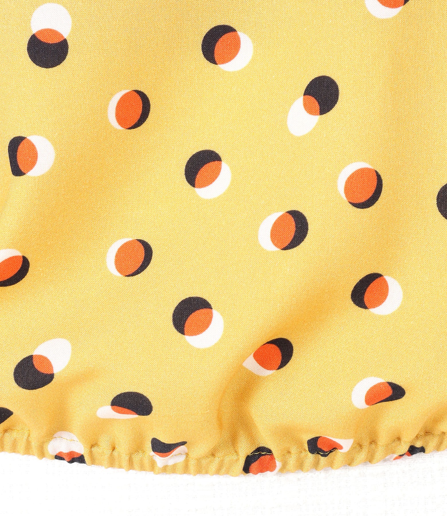 Digitally printed viscose blouse with dots,round decolletage,dropped sleeves and elastic at the end.