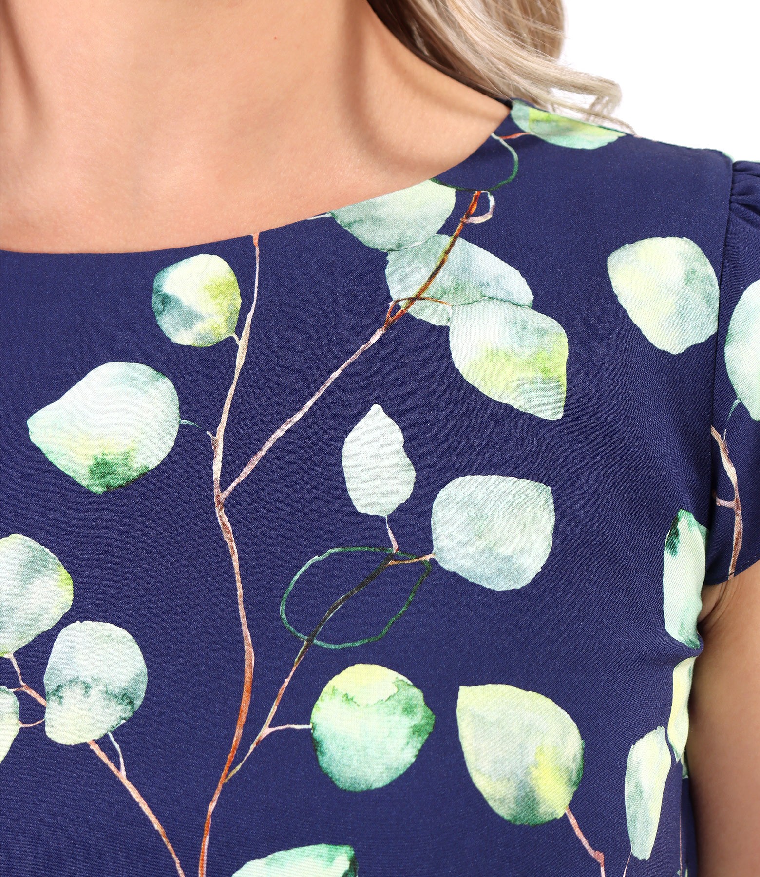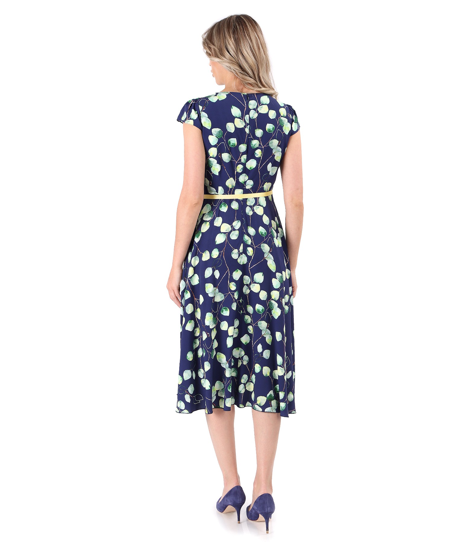 Elegant viscose dress printed with floral motifs (Navy Blue), size