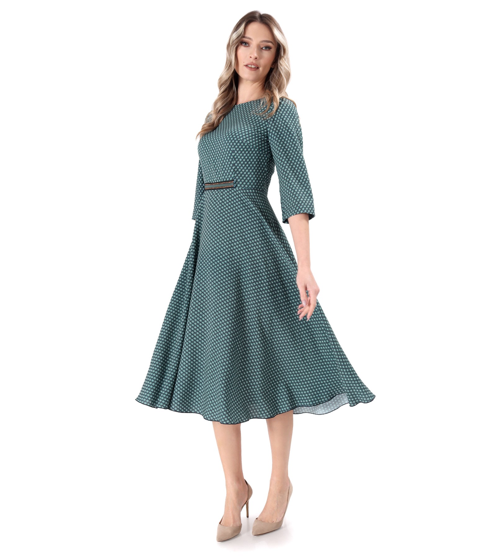 Elegant viscose dress printed with geometric motifs (Pine Green), size