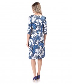 Elegant viscose satin dress printed with paisley motifs. The dress is doubled with viscose, has 3/4 sleeves, and a round neckline. It closes with a zipper in the middle of the back. The position of the print varies per product.