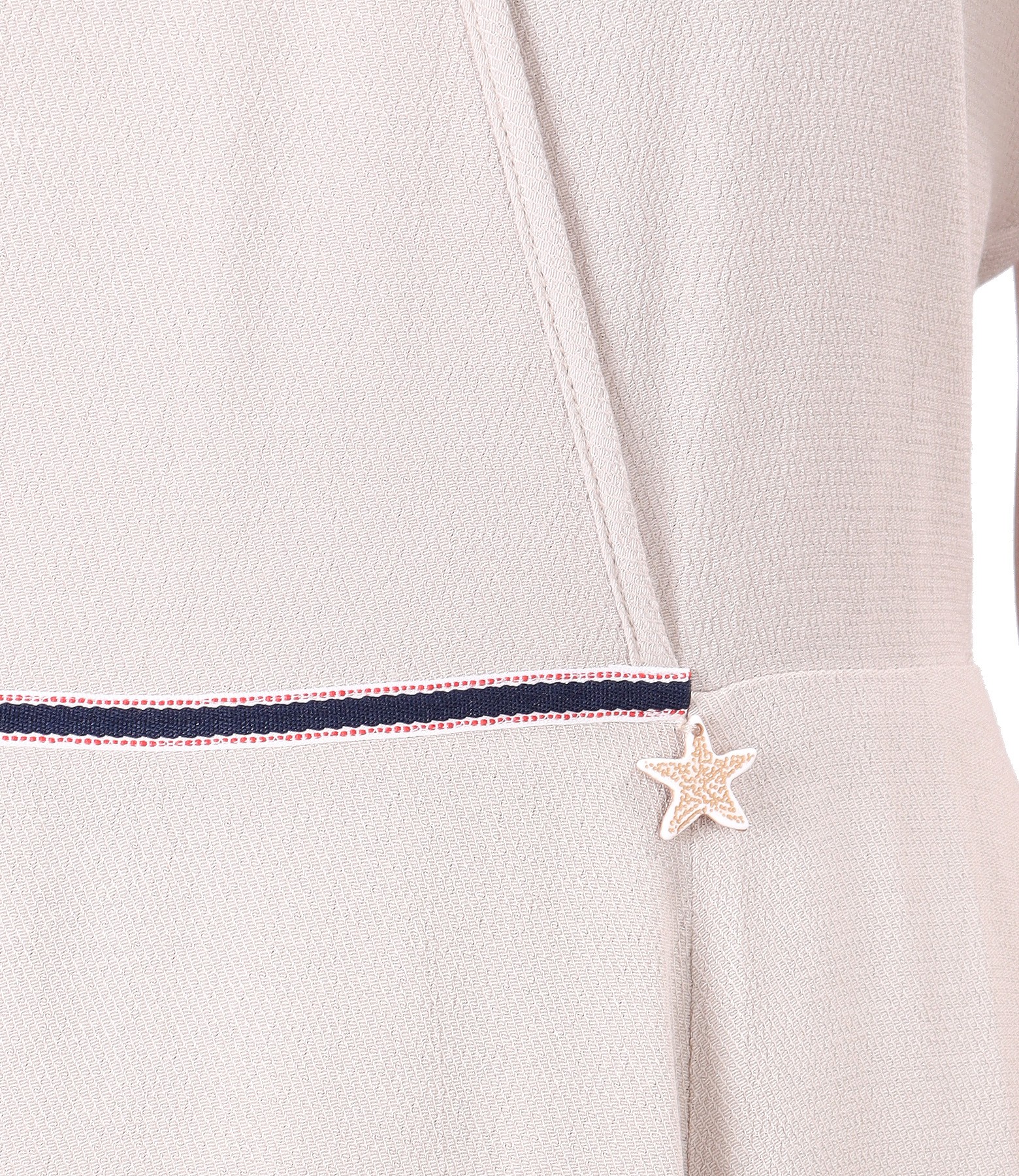 Viscose dress with dropped sleeves and spent breast,doubled with viscose,with rips band and starfish at the waist.It closes with a zipper hidden in the middle of the back.