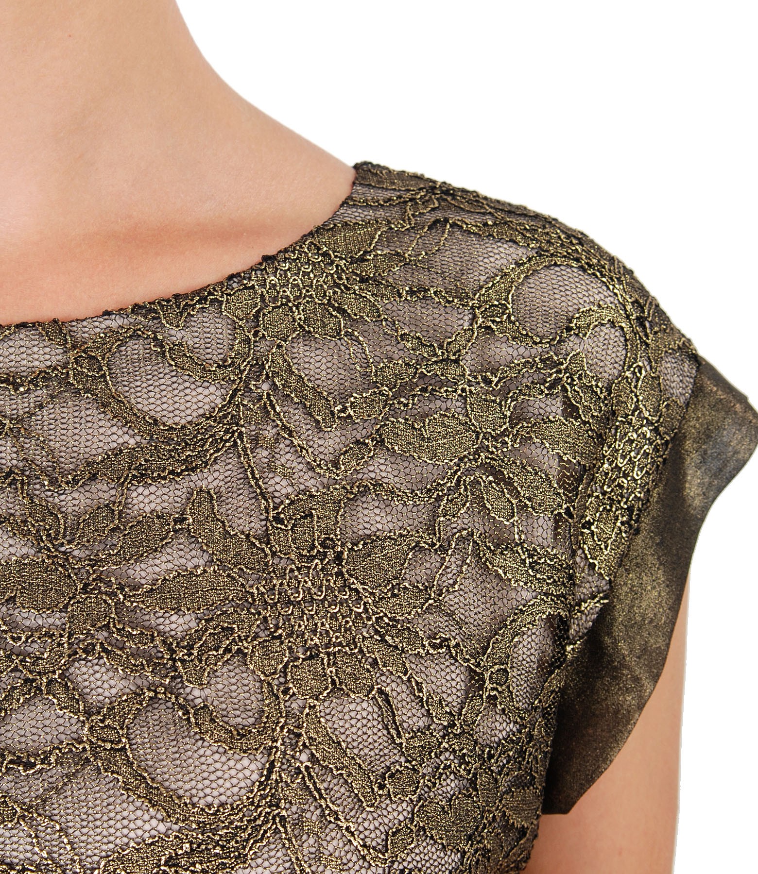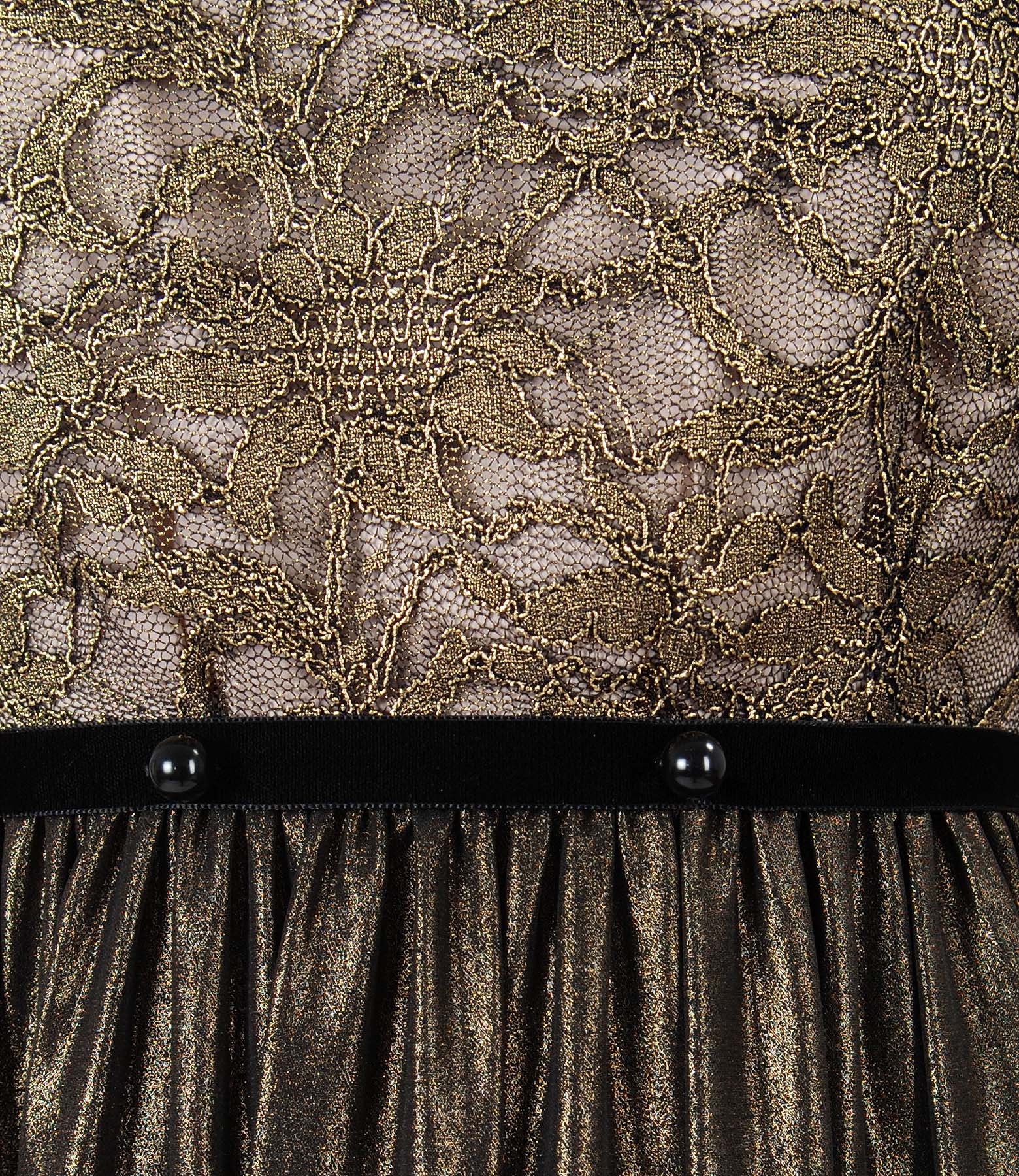 Evening dress, with veil skirt, doubled with elastic satin and lace corsage with floral motifs. Tighten the waist with a velvet belt, with pearls embellished with crystals. Closes with hidden zipper on the left side.