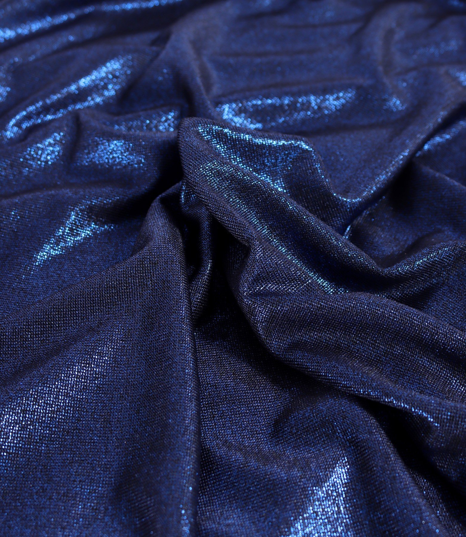 Evening dress made of jersey with a shiny effect, unlined and 3/4 sleeves. It has no closure system.