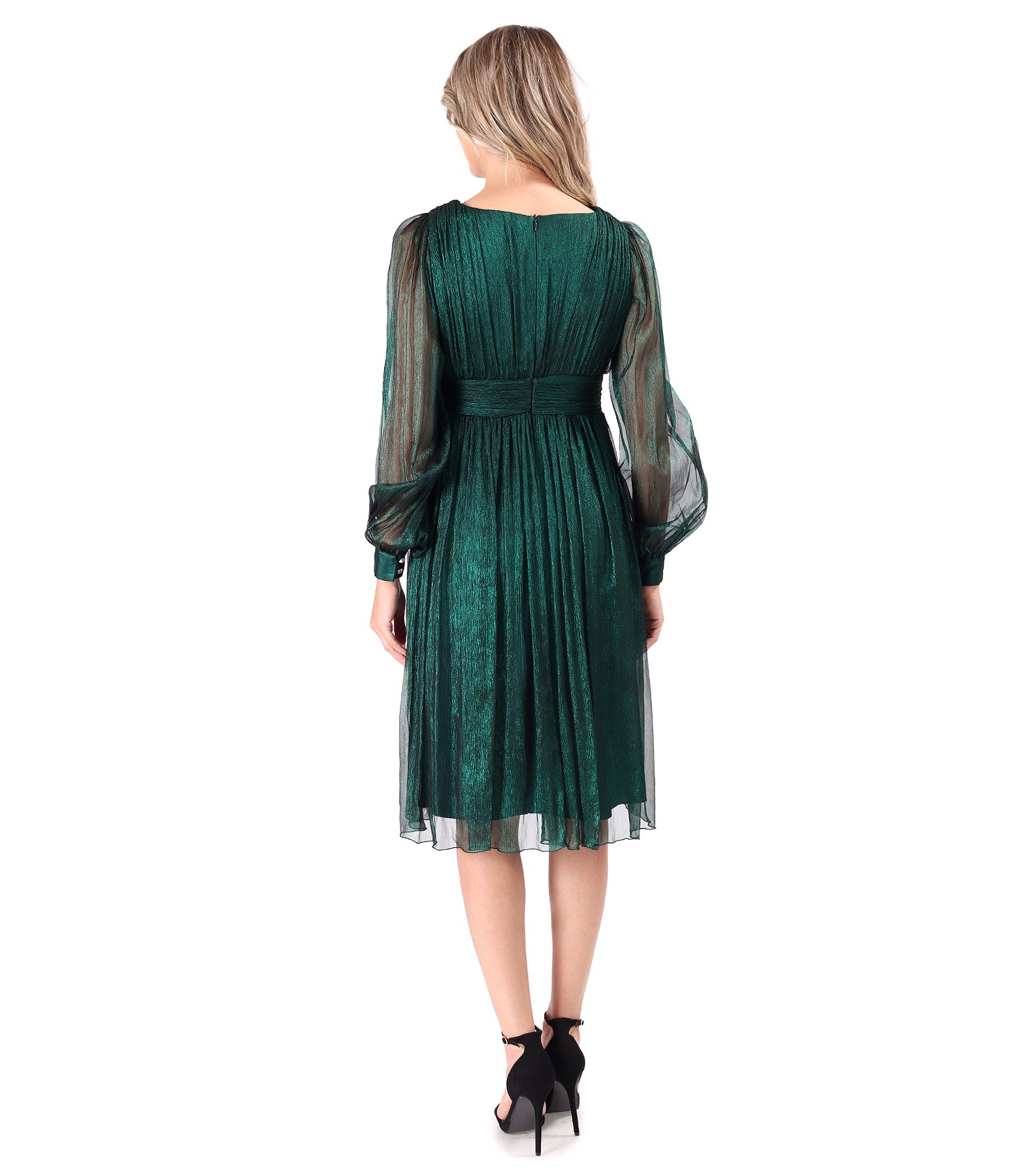 Evening dress made of natural silk veil with shiny effect (Emerald Green), size