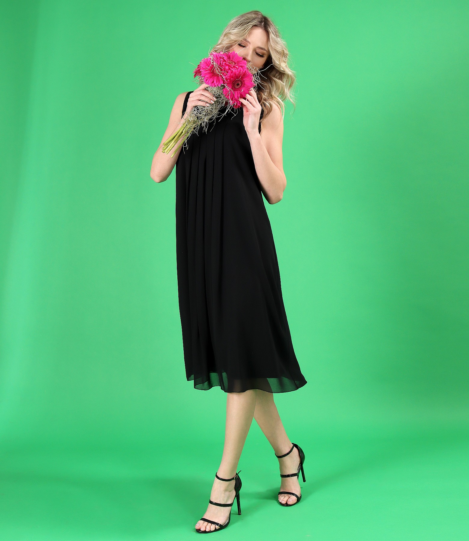 Evening dress made of veil with pleats on the front (Black), size