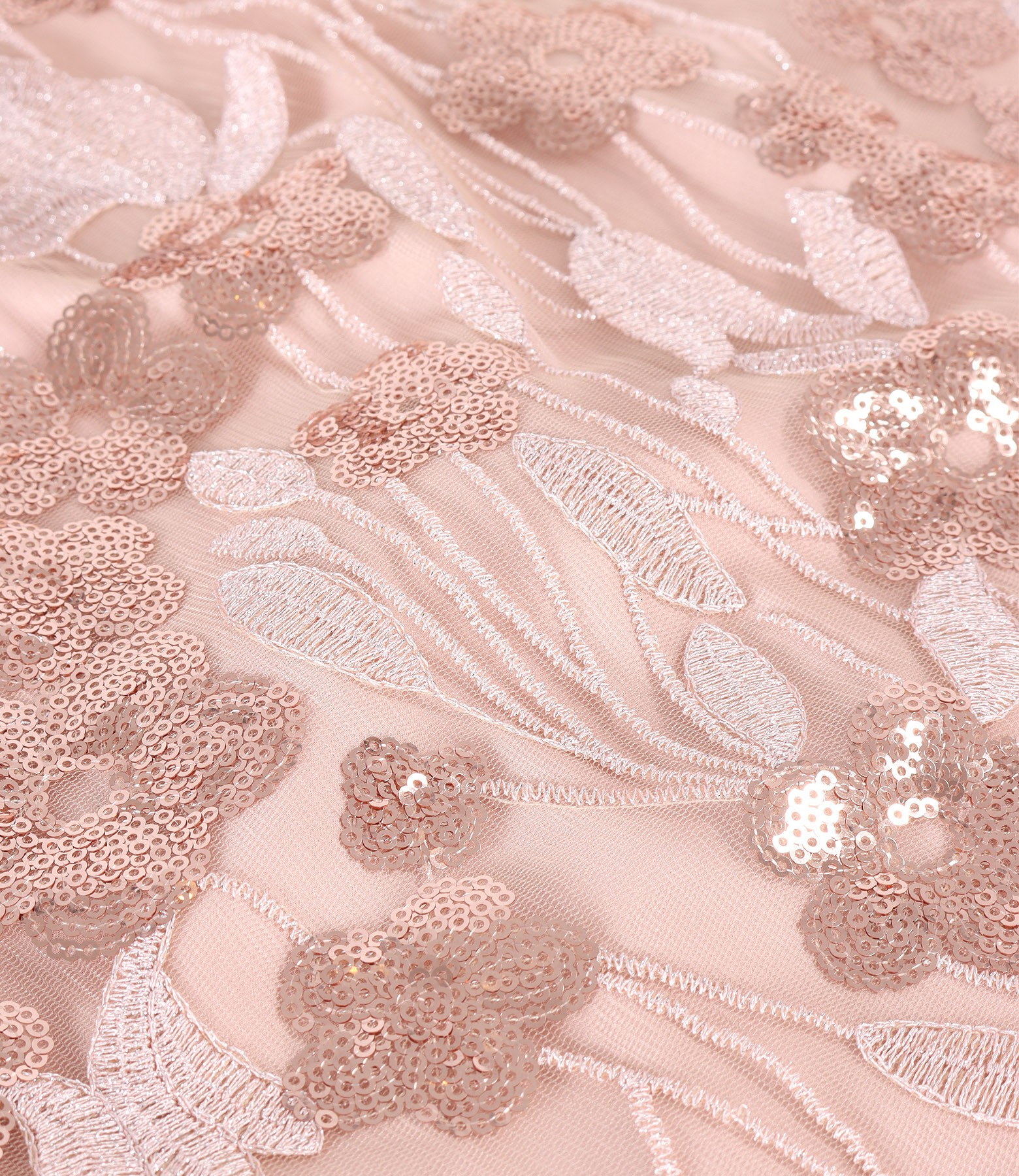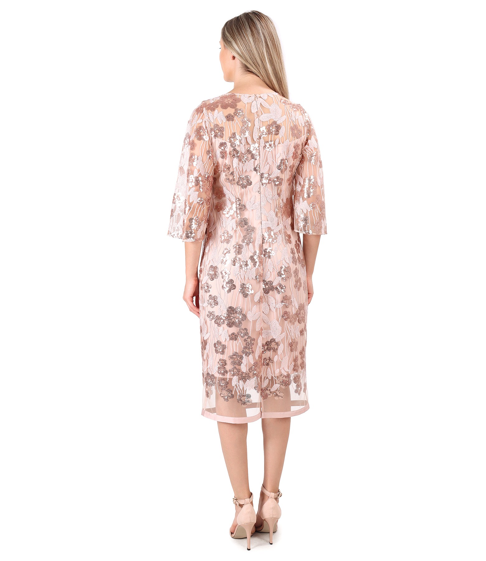 Evening dress with wide lace sleeves with sequins (Dusty pink), size