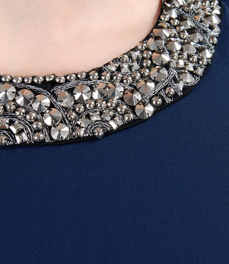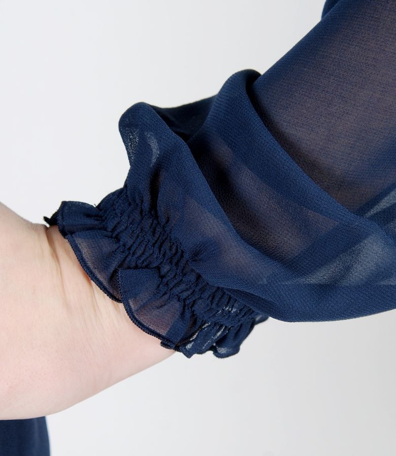 Evening veil dress with puffed sleeves and trim (Dark blue), size