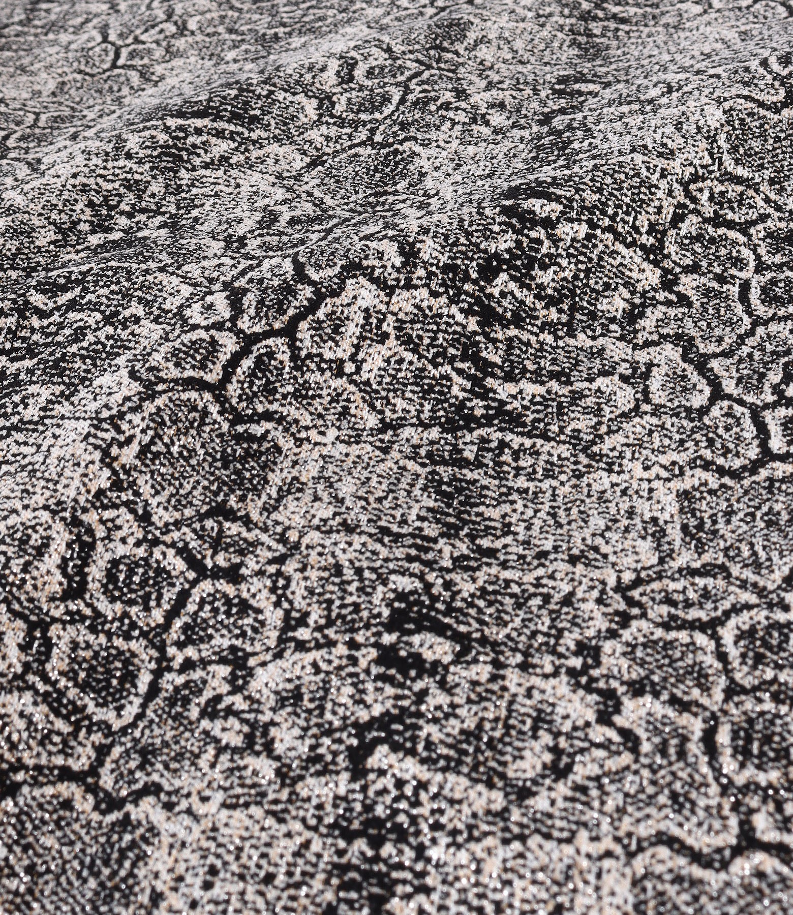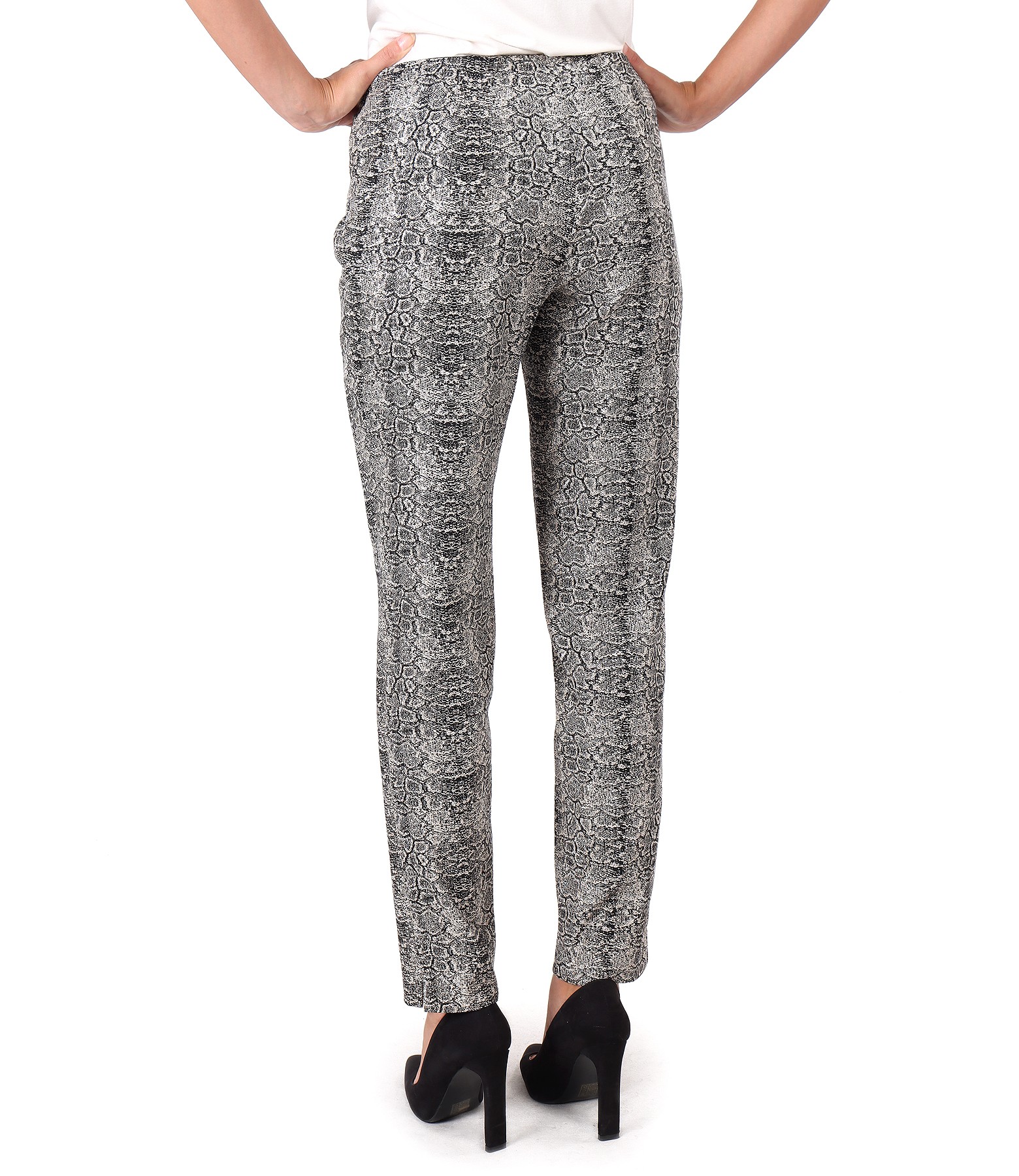 Ankle pants made of elastic fabric with animal print and lurex thread and with side slits. They close with a hidden zipper on the left side.