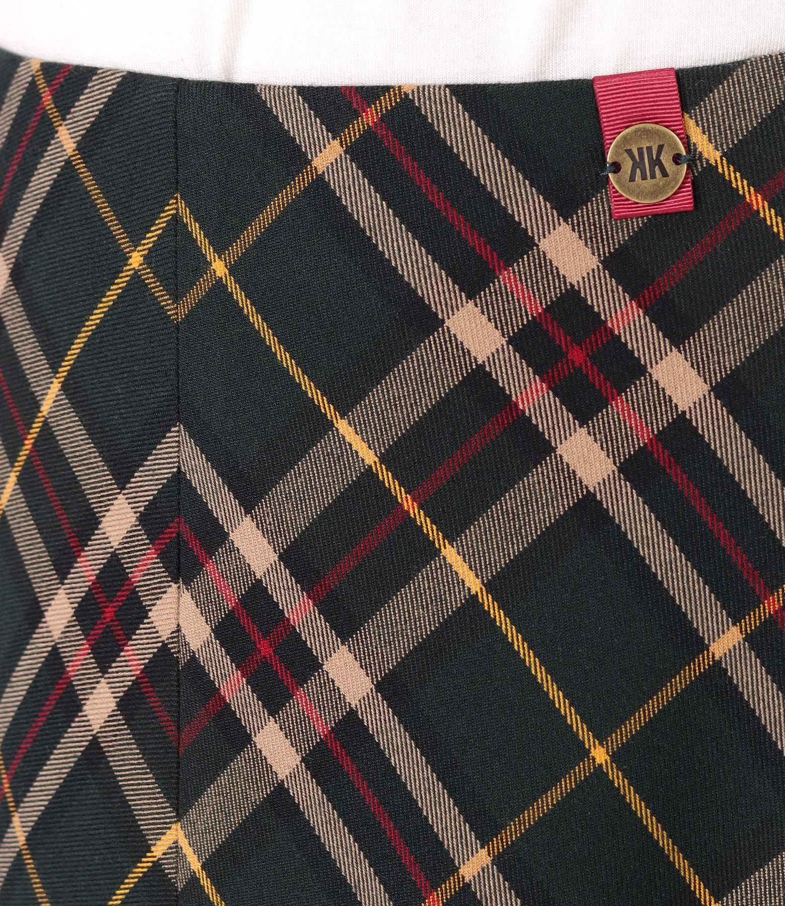Flared midi skirt made of elastic fabric with checkered viscose. Closes with a hidden zipper in the middle of the back.