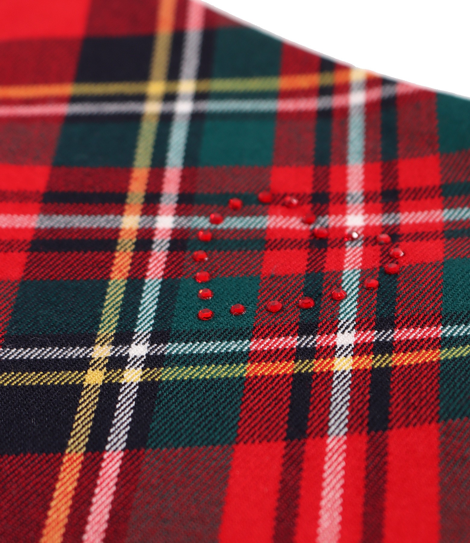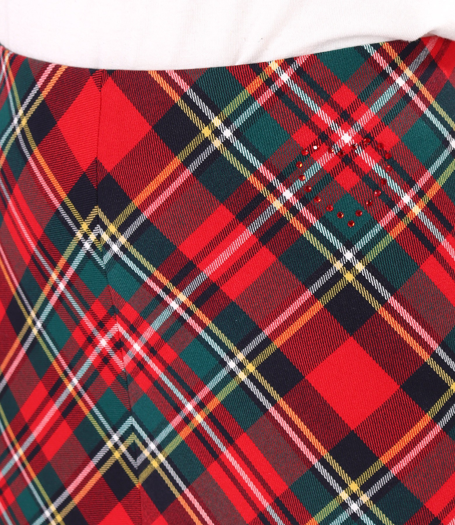 Flared skirt made of elastic fabric with checkered viscose and ornament at the waist. It closes with a hidden zipper in the middle of the back.