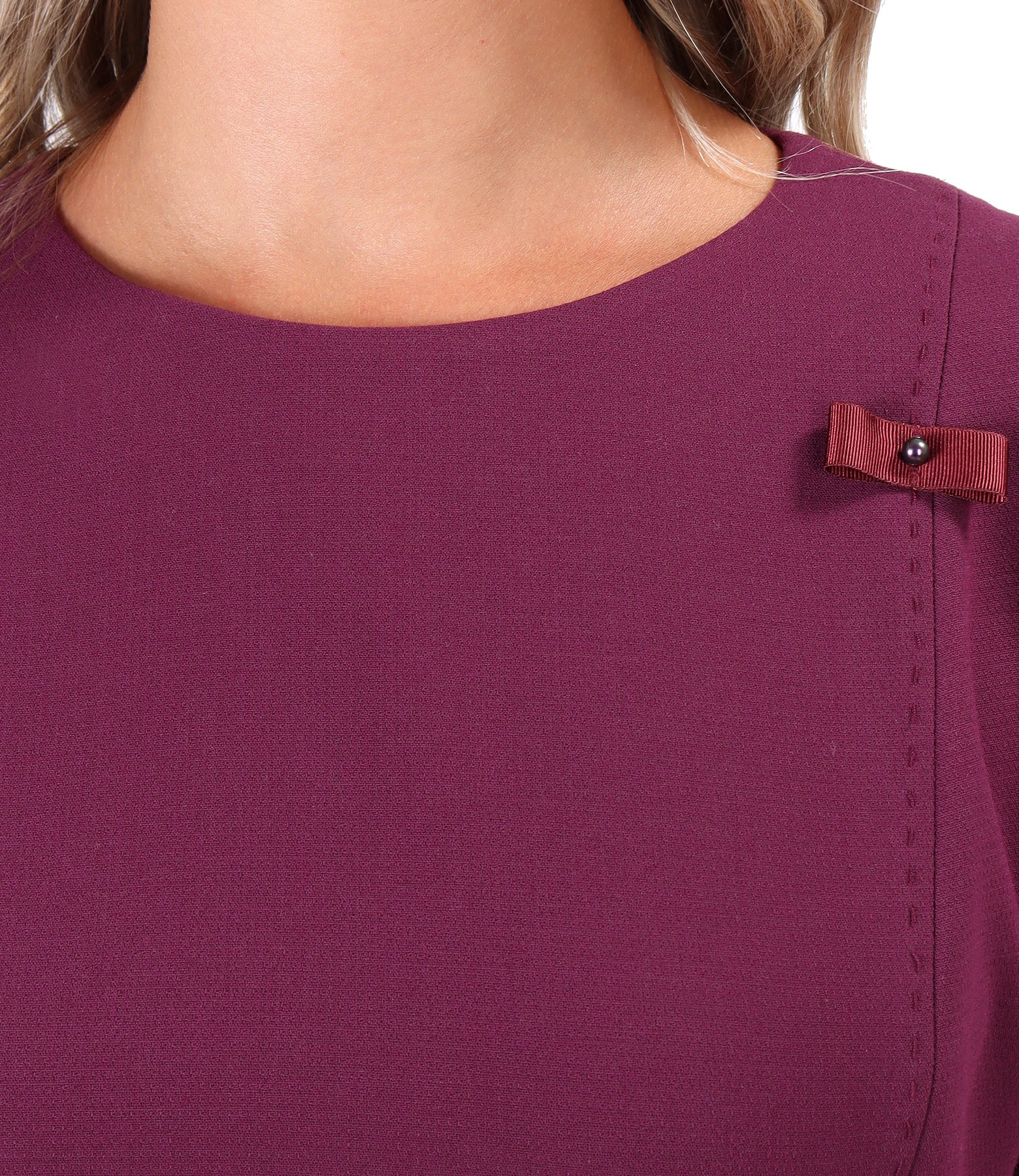 Office dress made of elastic fabric, with short sleeves and decorative stitching. It closes with a zipper hidden in the middle of the back.