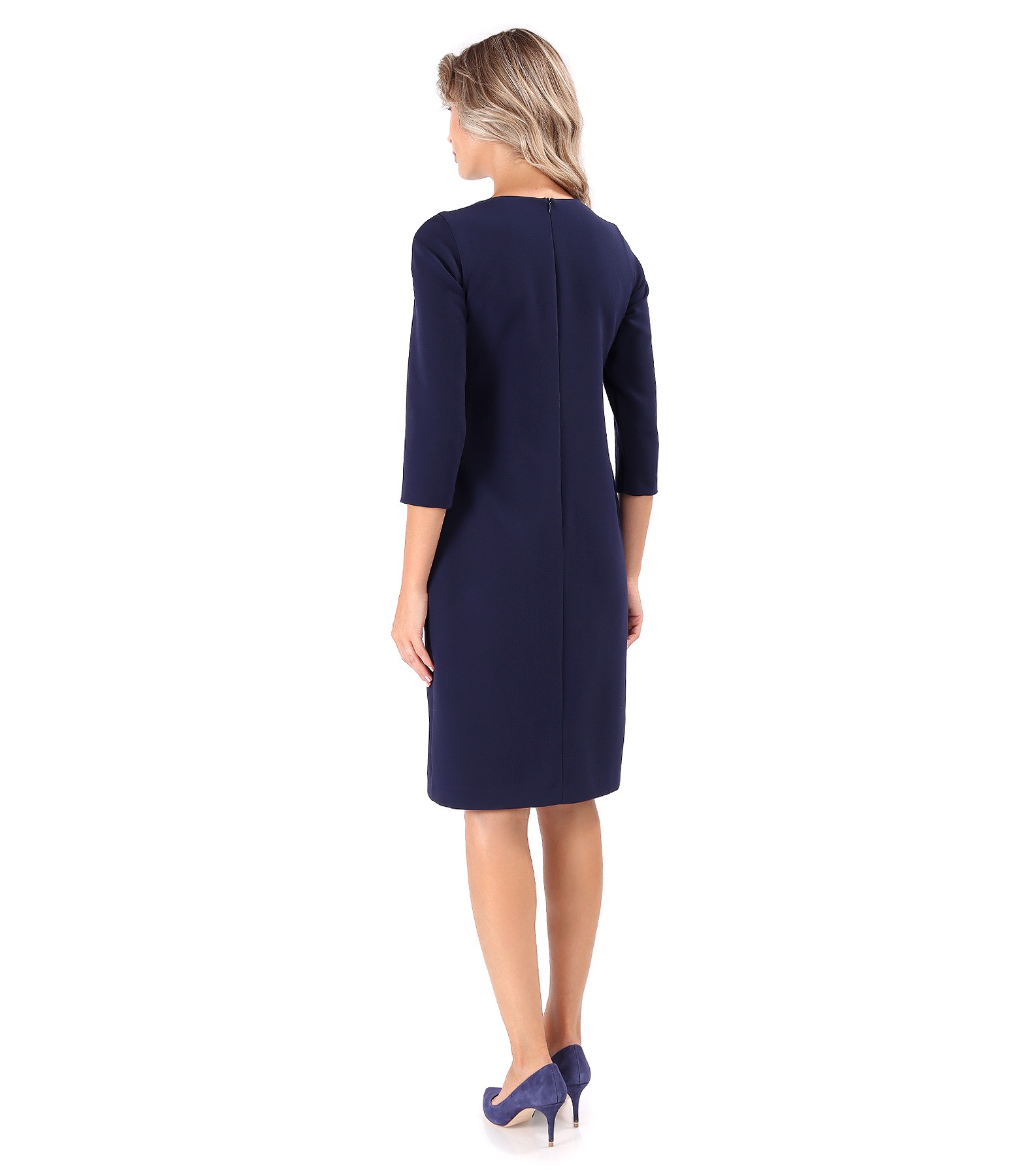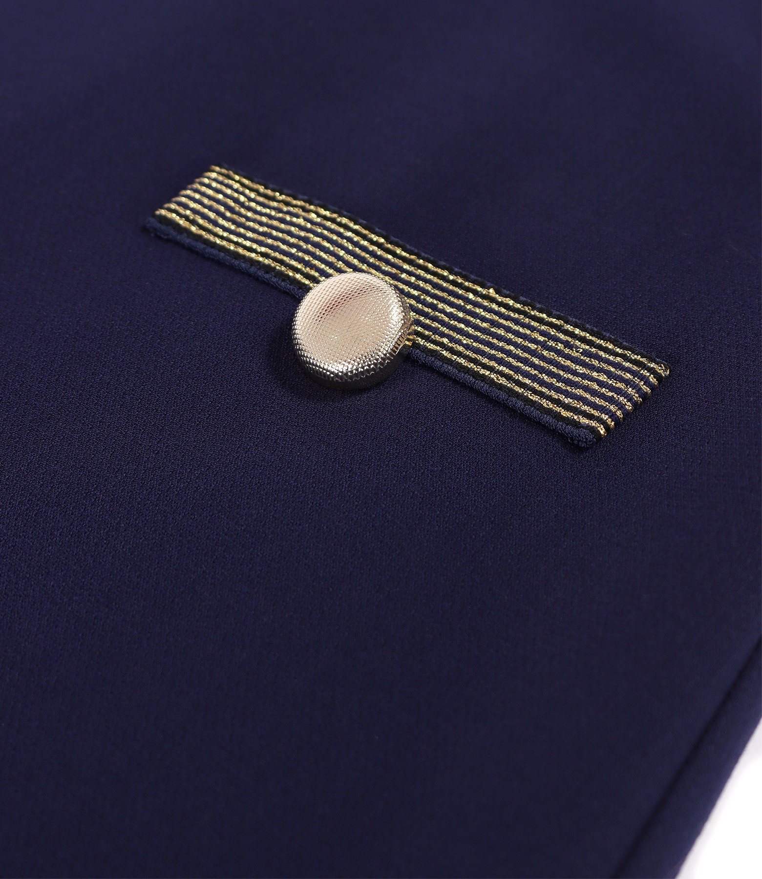 Ankle pants made of elastic fabric with viscose, with a stripe sewn on the front, side pockets, and multi-colored elastic at the waist. It closes with a normal zipper, counter-button, and 2 staples on the front.