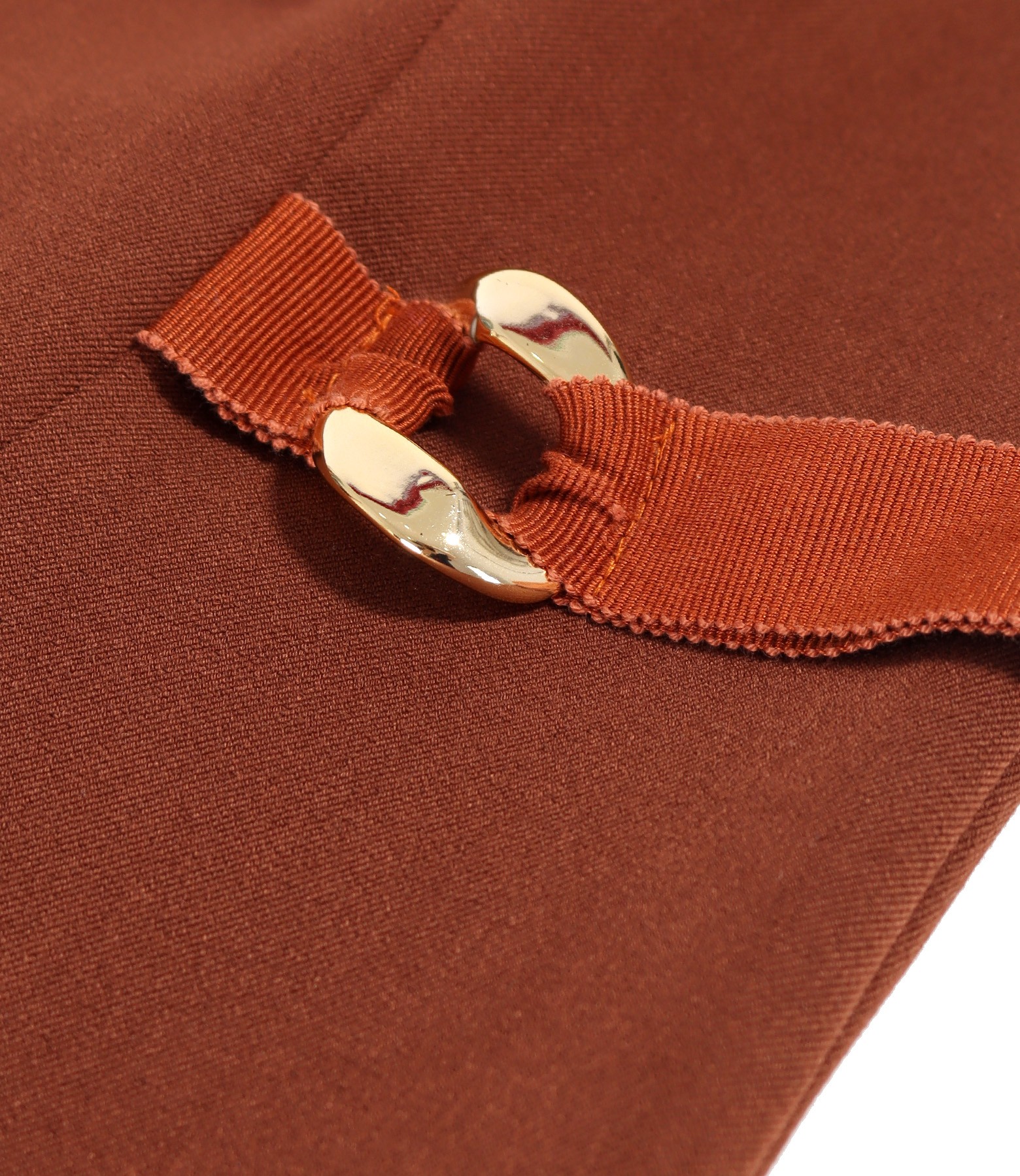 Flared Office Dress with 3/4 Sleeves (Brick Red), size
