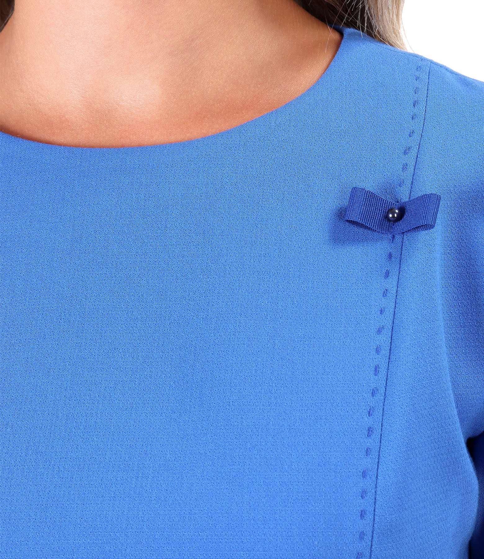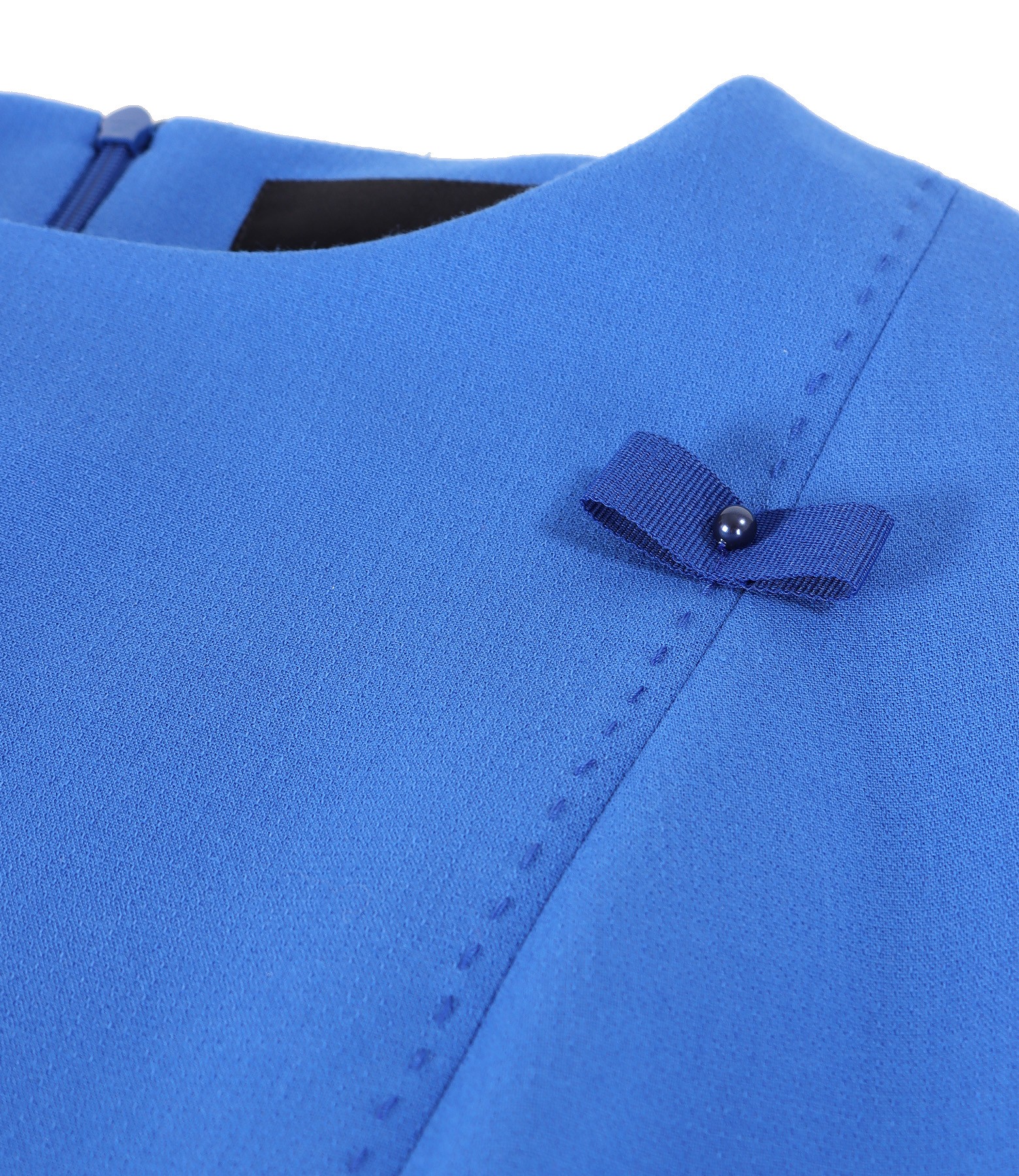 Office dress made of elastic fabric, with short sleeves and decorative stitching. It closes with a zipper hidden in the middle of the back.