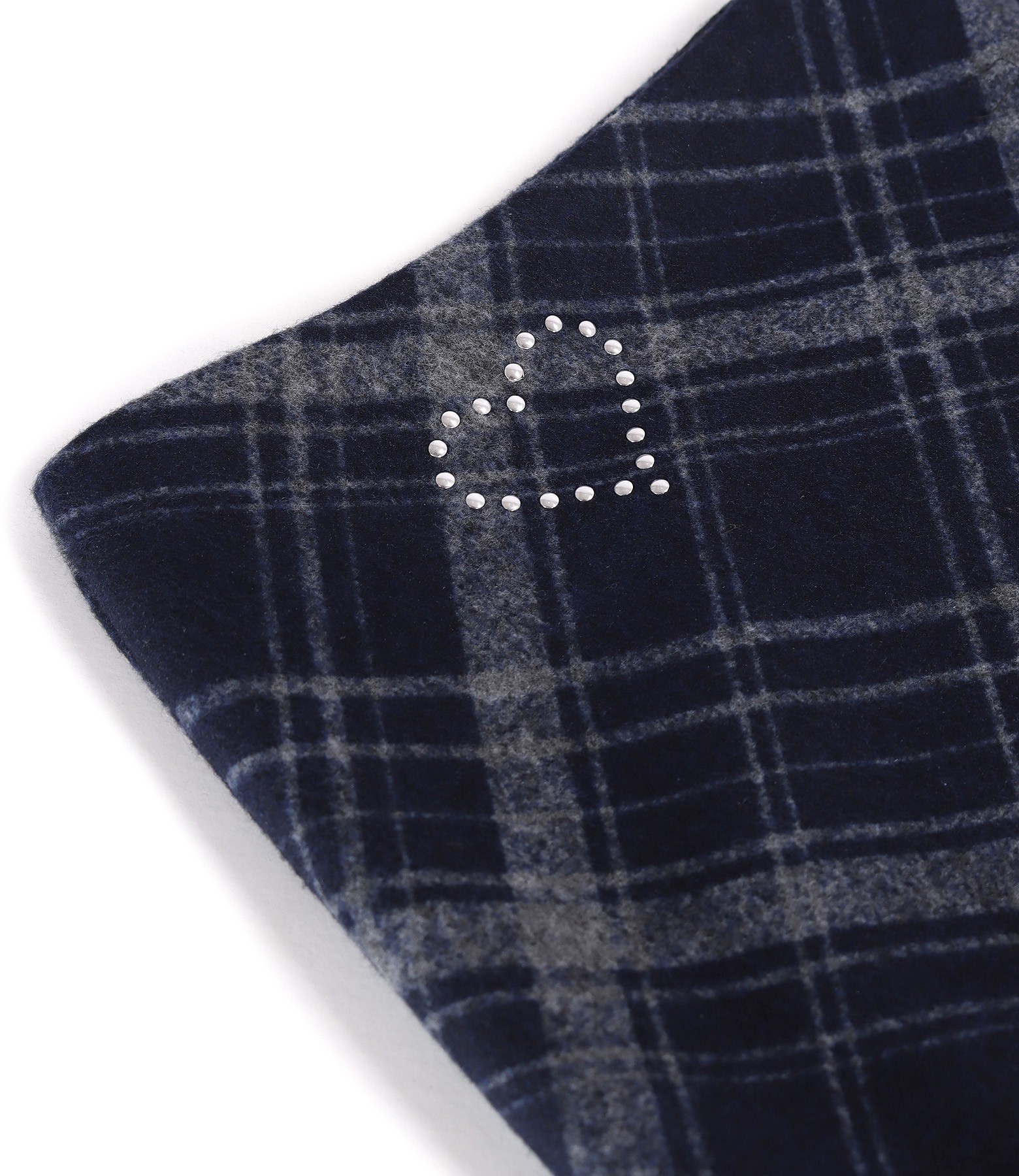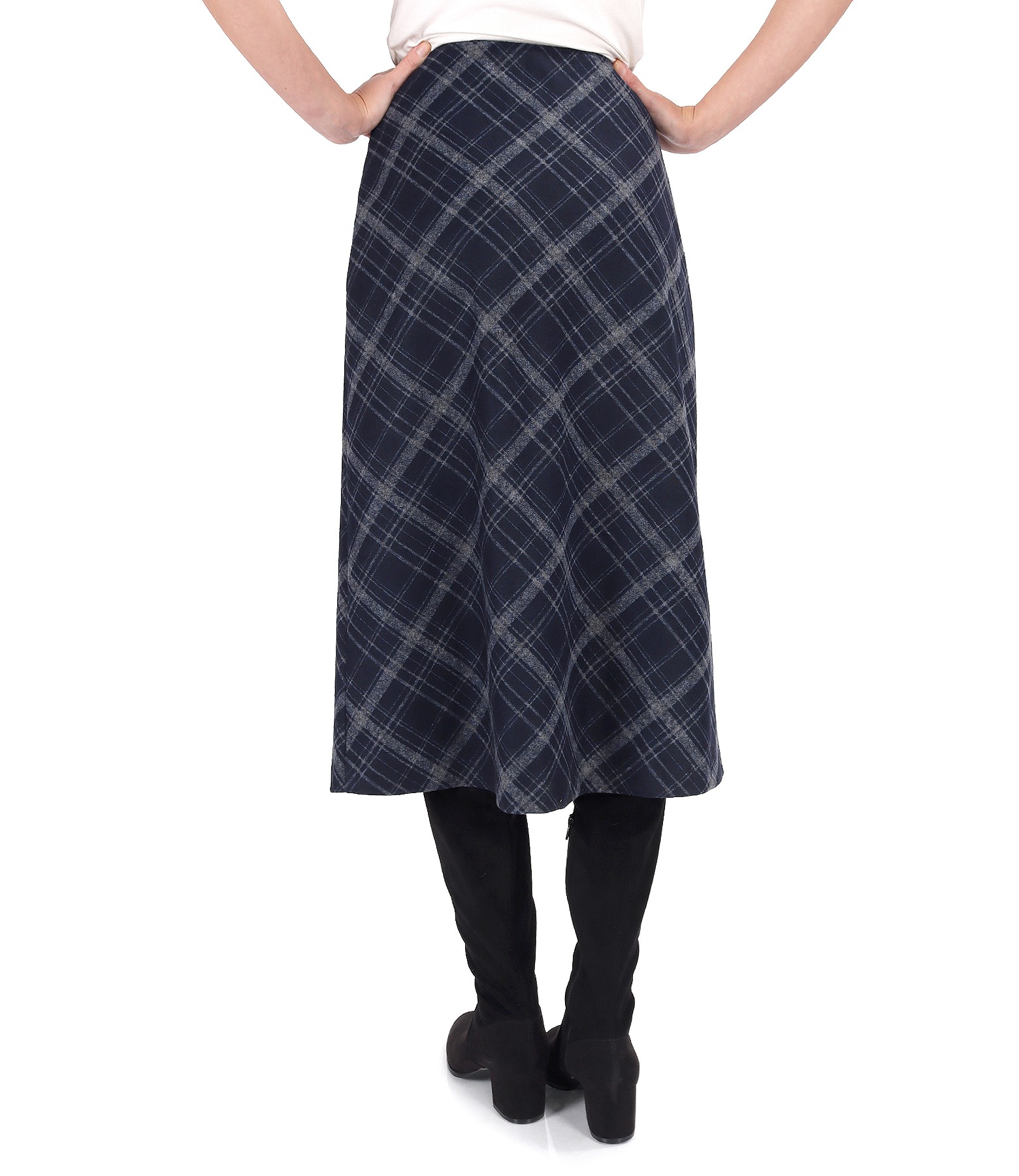 Flared midi skirt made of thick elastic checkered fabric, padded and with a decorative heart at the waist. Closes with a hidden zipper on the left side.