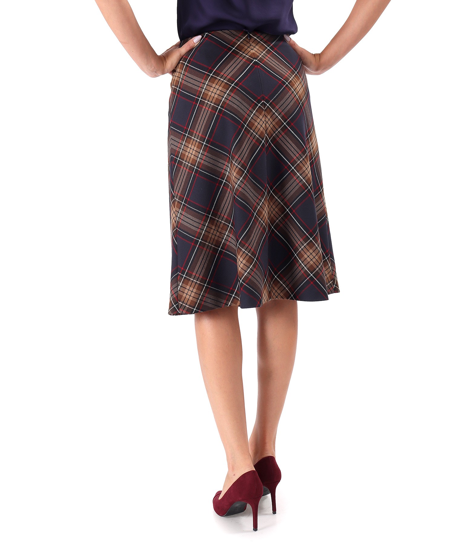 Flared skirt made of checkered viscose fabric (Navy blue), size