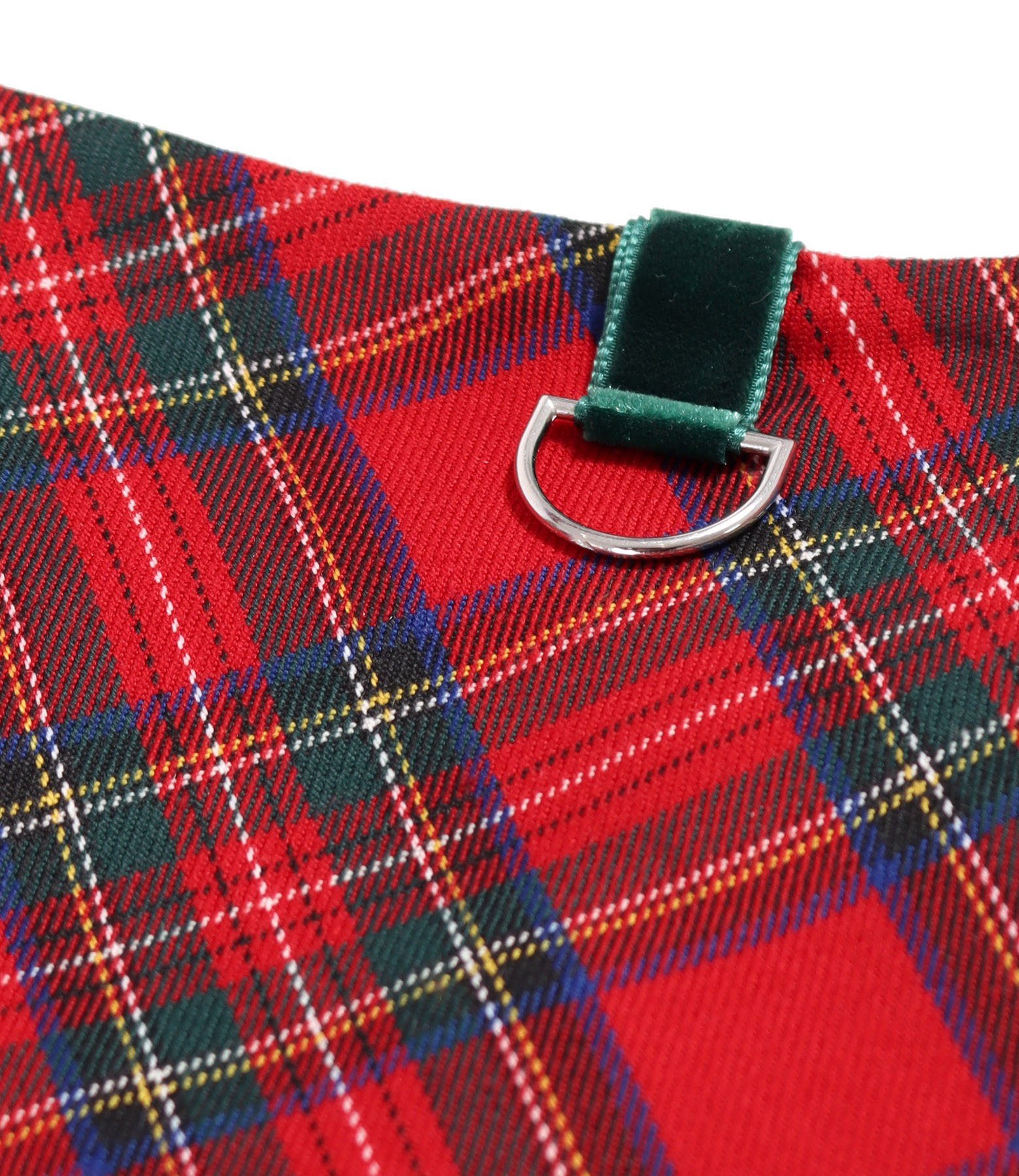Flared skirt made of thick elastic fabric with checkered viscose and velvet ornament at the waist. It closes with a hidden zipper in the middle of the back.