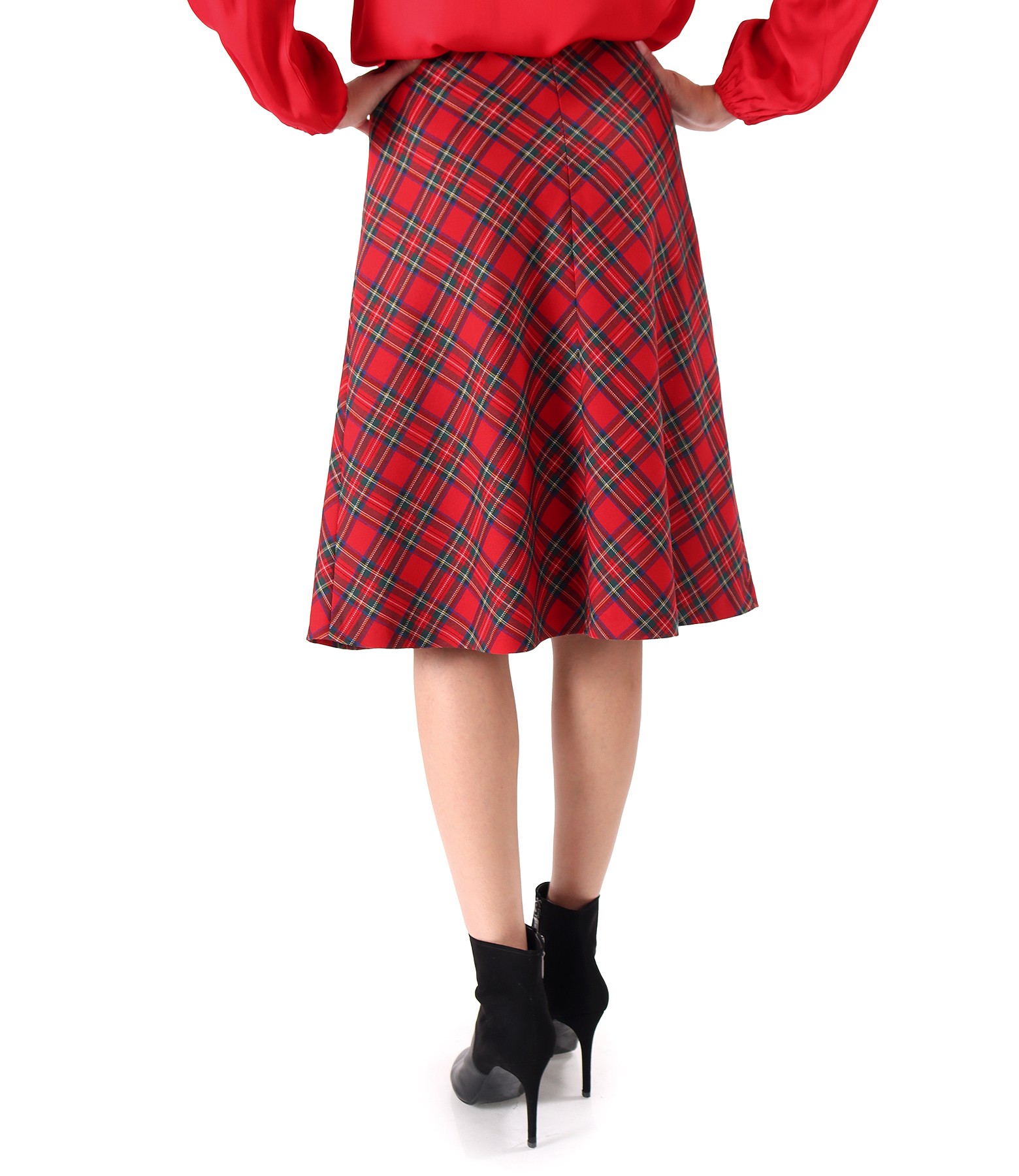 Flared skirt made of checkered viscose fabric (Red), size