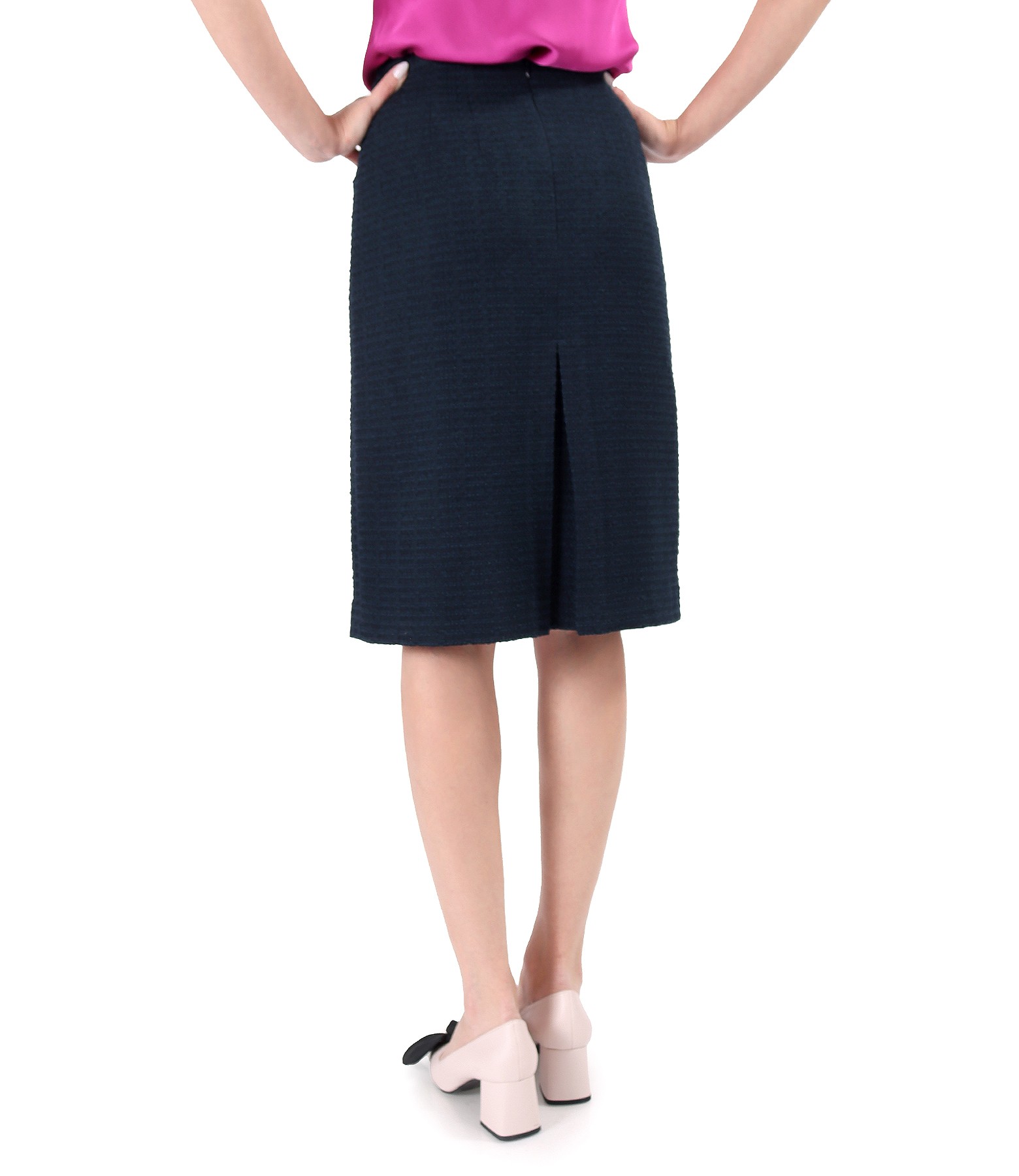 Flared skirt made of loops with viscose and cotton, with a pleat in the middle of the front and the middle of the back. It closes with a zipper on the middle of the back.