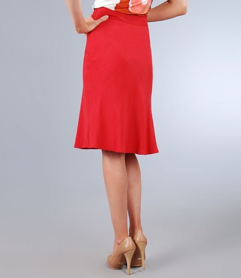 * red viscose skirt, casual, moderately flared