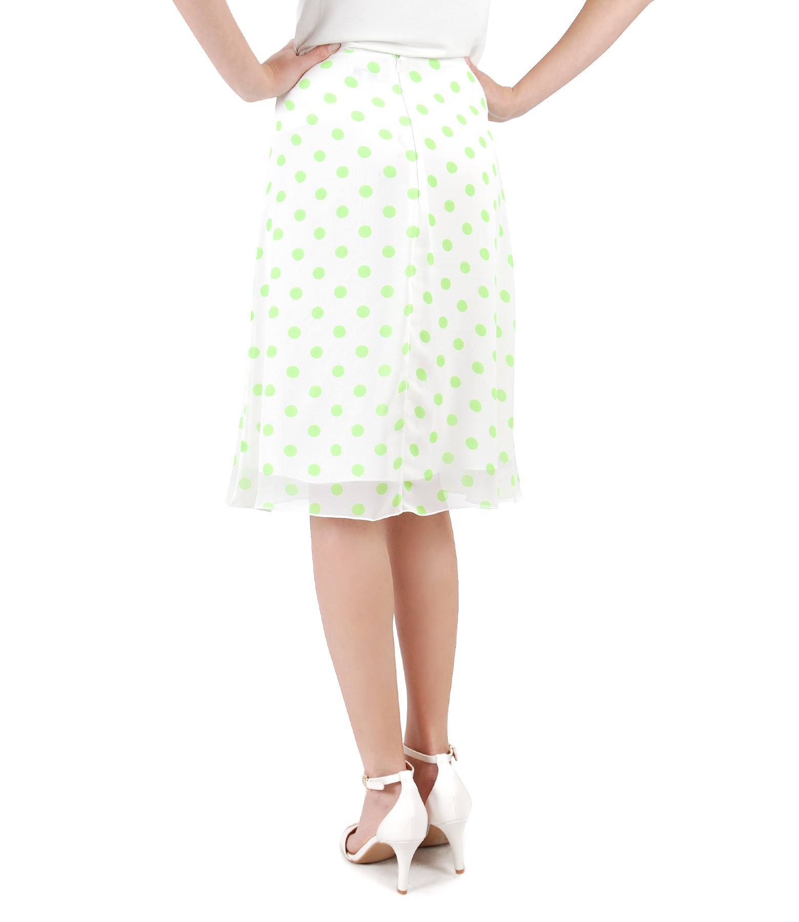 Flaring skirt made of veil printed with dots, doubled with viscose. Closes with hidden zipper on the middle back.