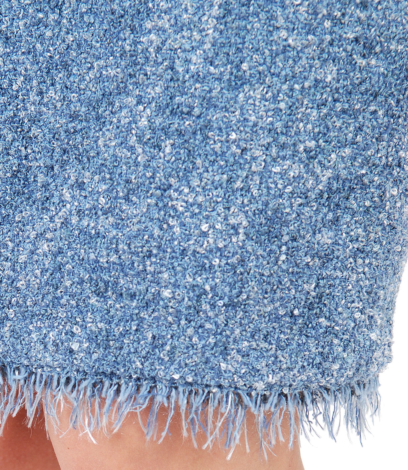 Fringe cotton loop skirt, padded, with slit on the middle back. Closes with hidden zipper on the middle back.