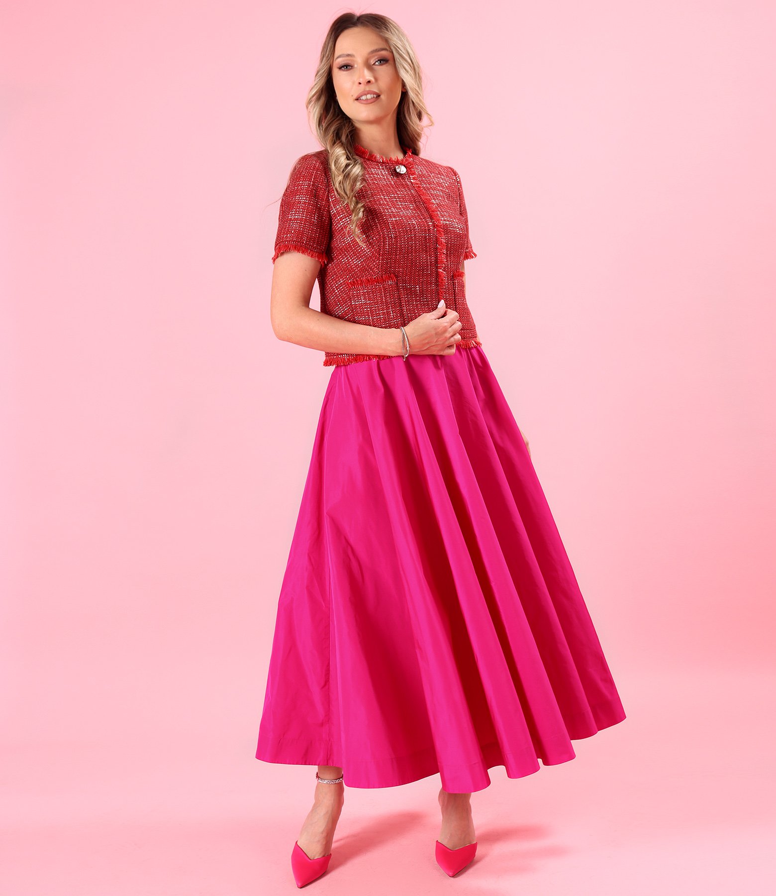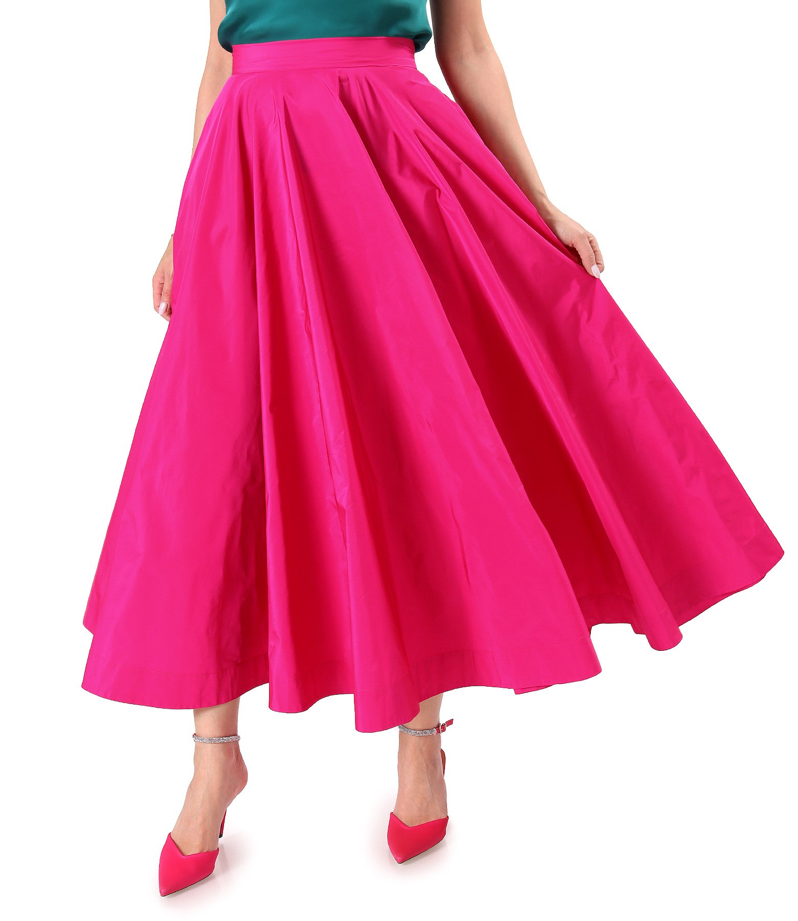 Fusta lunga clos din tafta subtire cu elastic decorativ pe spate (Cyclamen), size