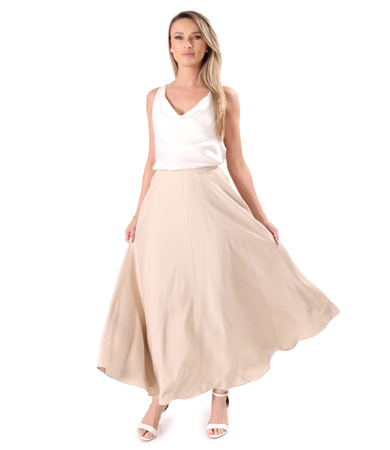 Fusta lunga din viscoza usor creponata, cu buzunare laterale.