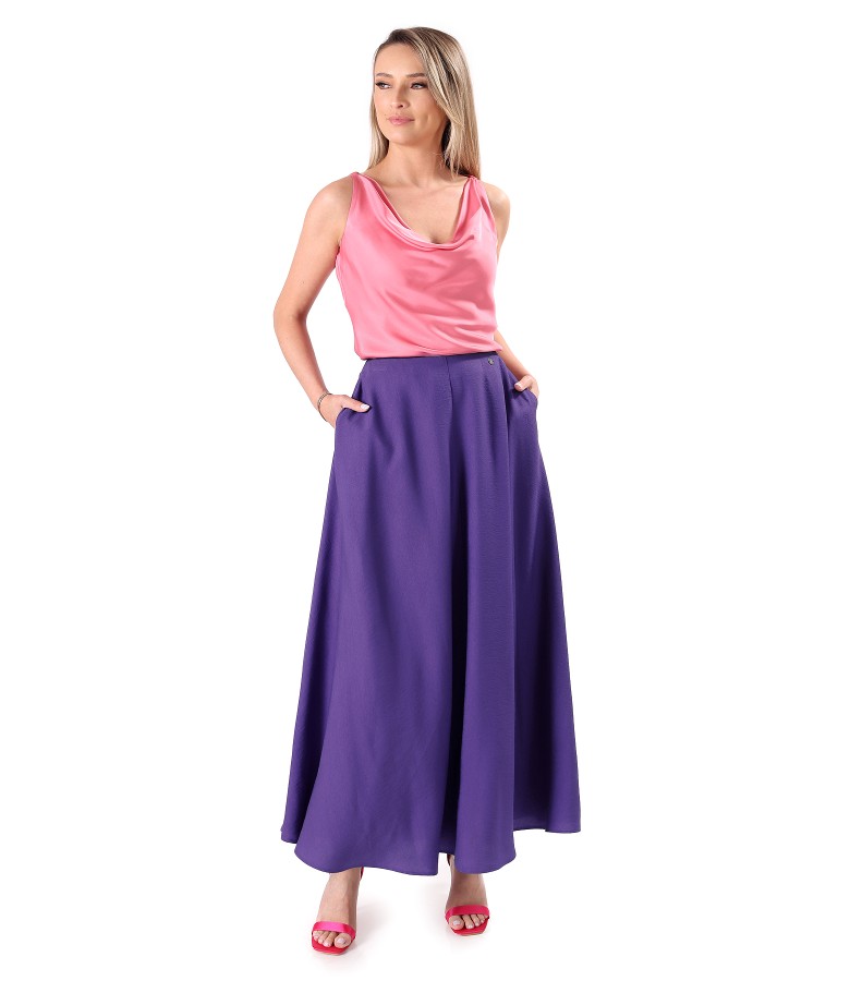 Fusta lunga din viscoza usor creponata, cu buzunare laterale.