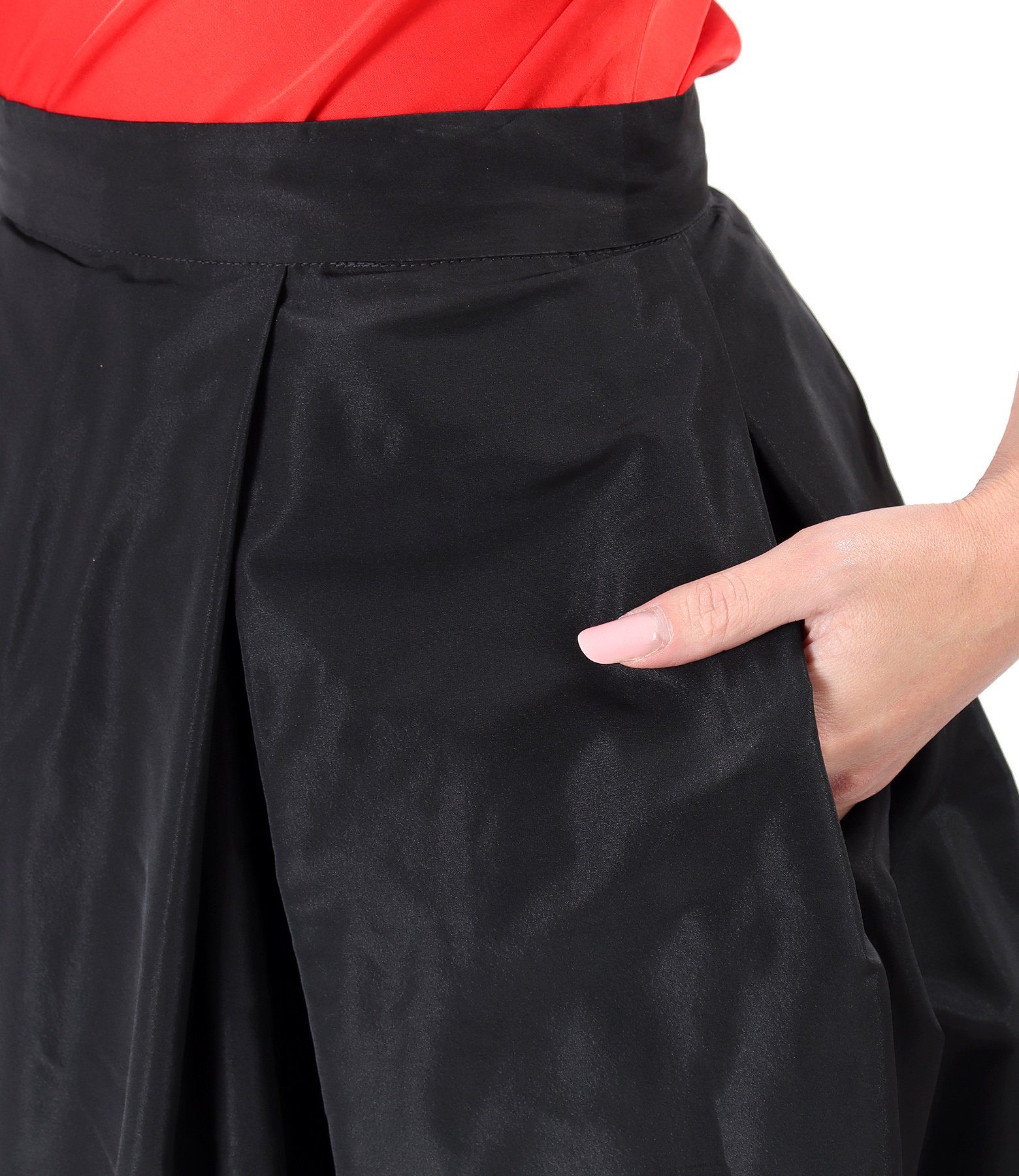 Fusta midi clos din tafta usoara cu efect mat, cu buzunare laterale. Se inchide cu fermoar ascuns pe mijloc spate.